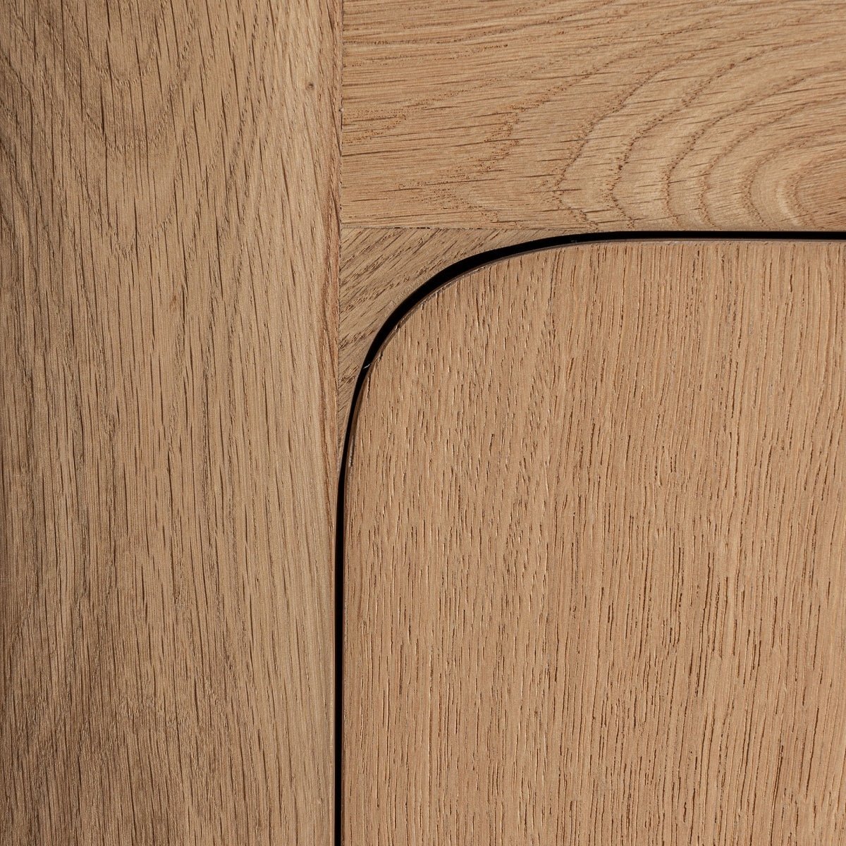 Chest of drawers made of patinated white oak wood. It has 3 drawers and a structure suspended from the floor with wooden legs. It can be used as a nightstand.