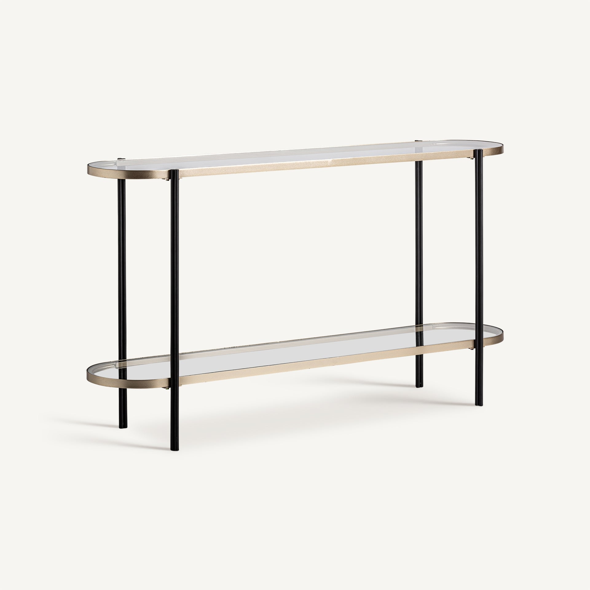 Art Deco-style console table, made of black and gold iron combined with glass. This product is disassembled.