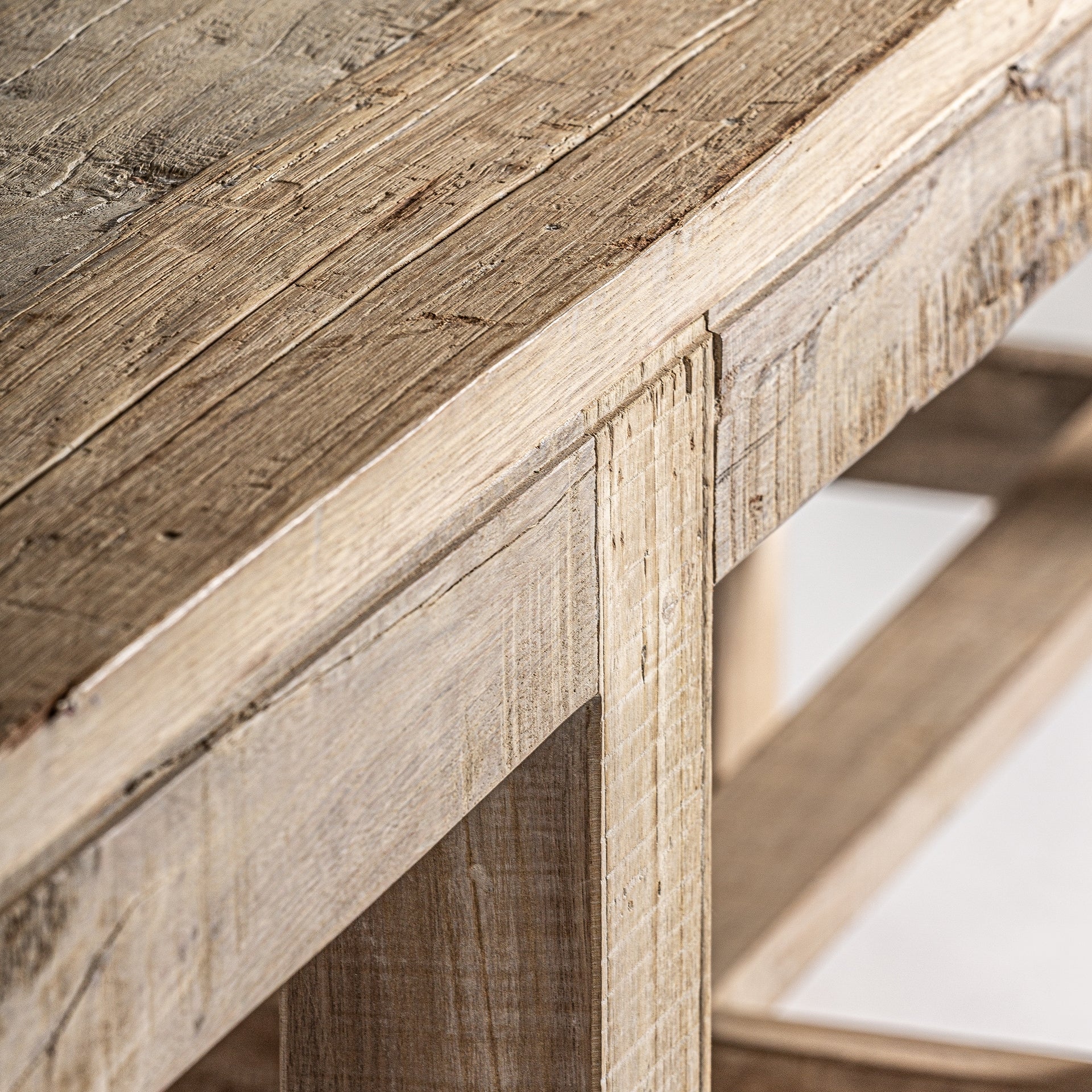 Rustic console table handcrafted from wood with a natural finish, It is the perfect complement for spaces that seek a warm and authentic touch.