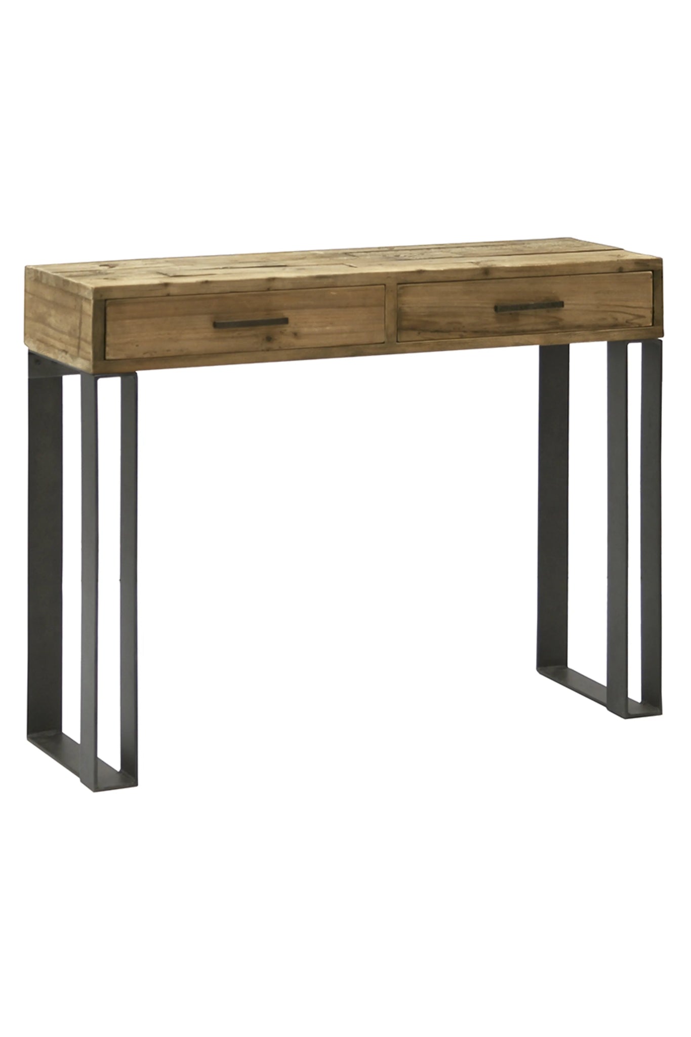 Beautiful console table made of natural pine wood with 3 and 2 drawers and a black iron leg frame. Available in two different sizes.