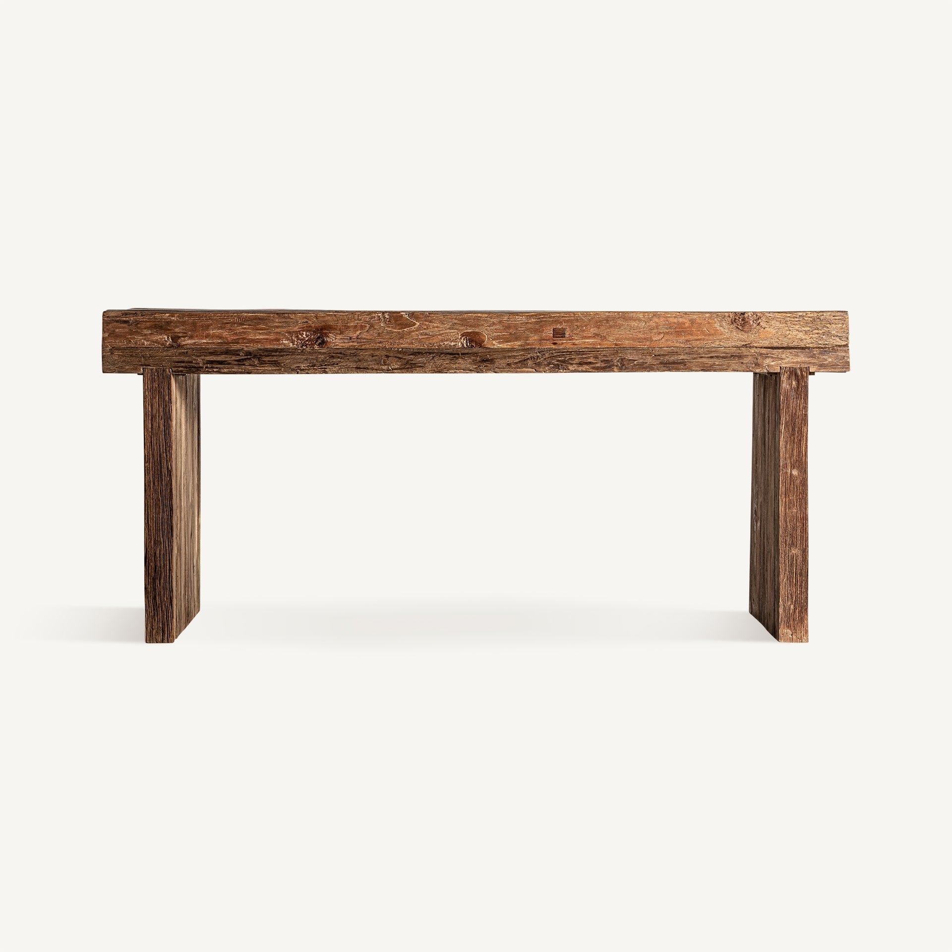Recycled teak wood console brings a touch of authentic nature and elegance to any space. Its natural finish highlights the grain and richness of the wood, combining design and responsibility.