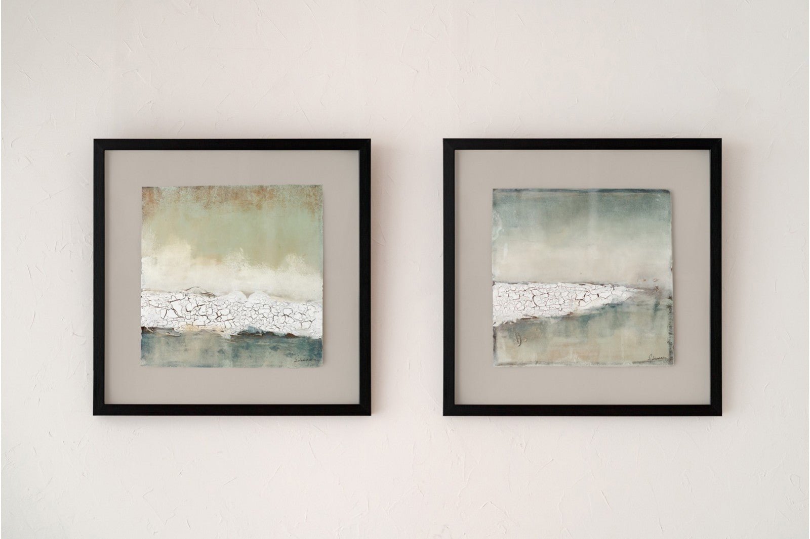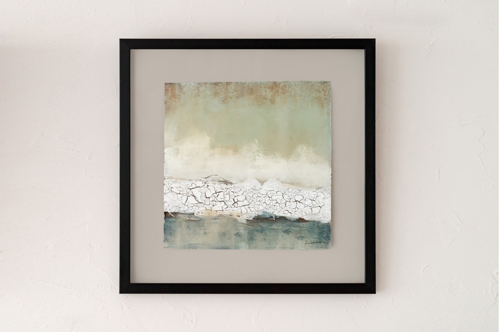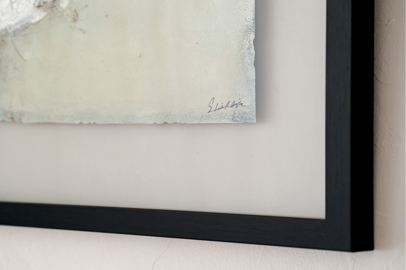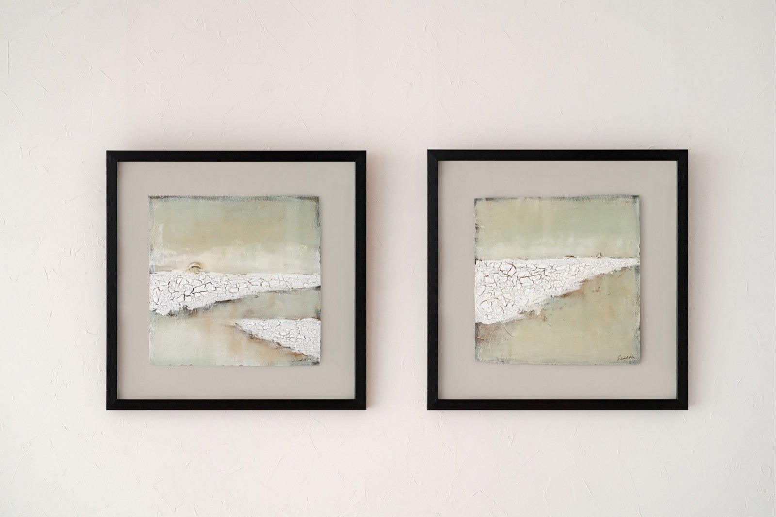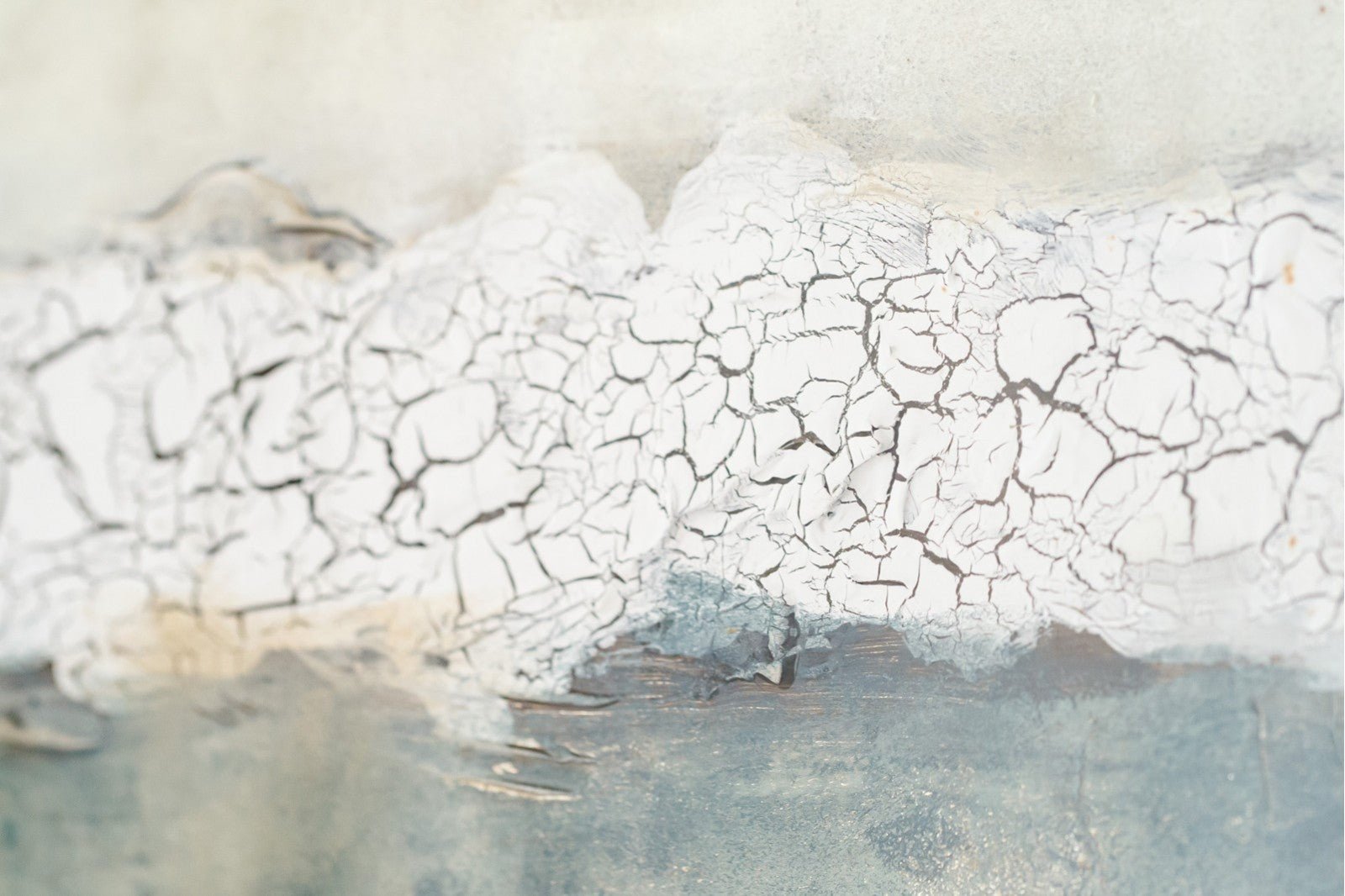 Hand-made painting on MDF board with a greyish white finish with different textures.