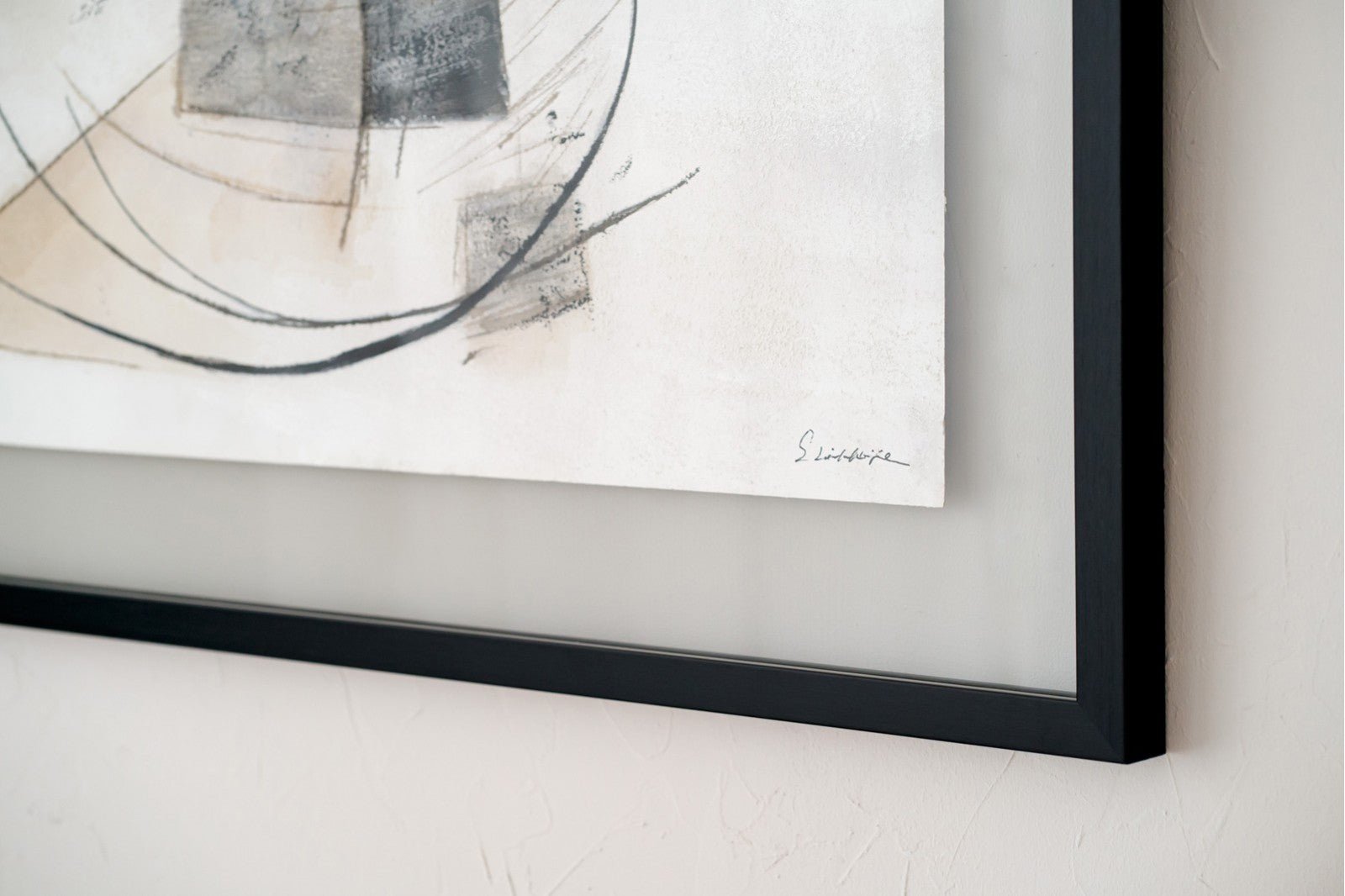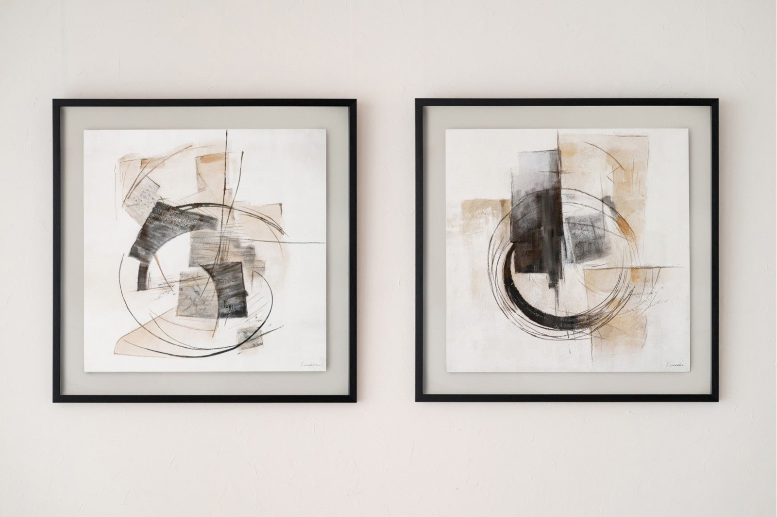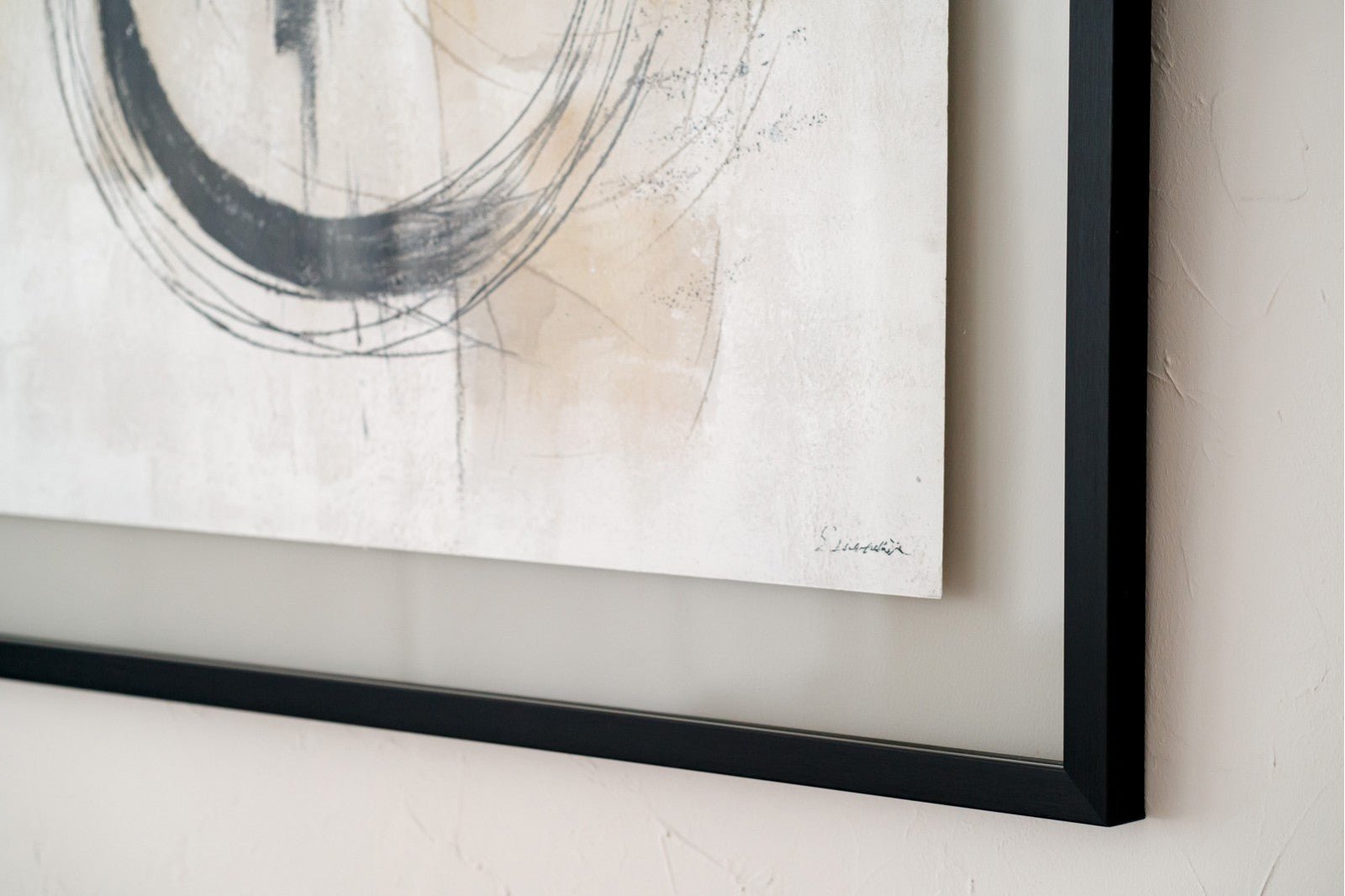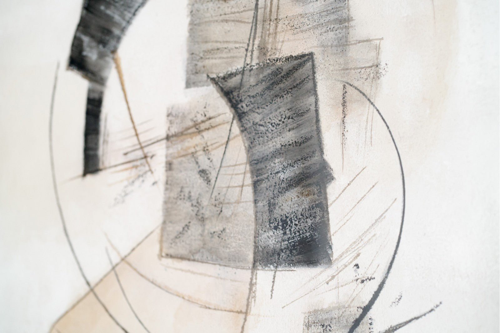 Hand-made painting on MDF board with a greyish white finish with different textures.