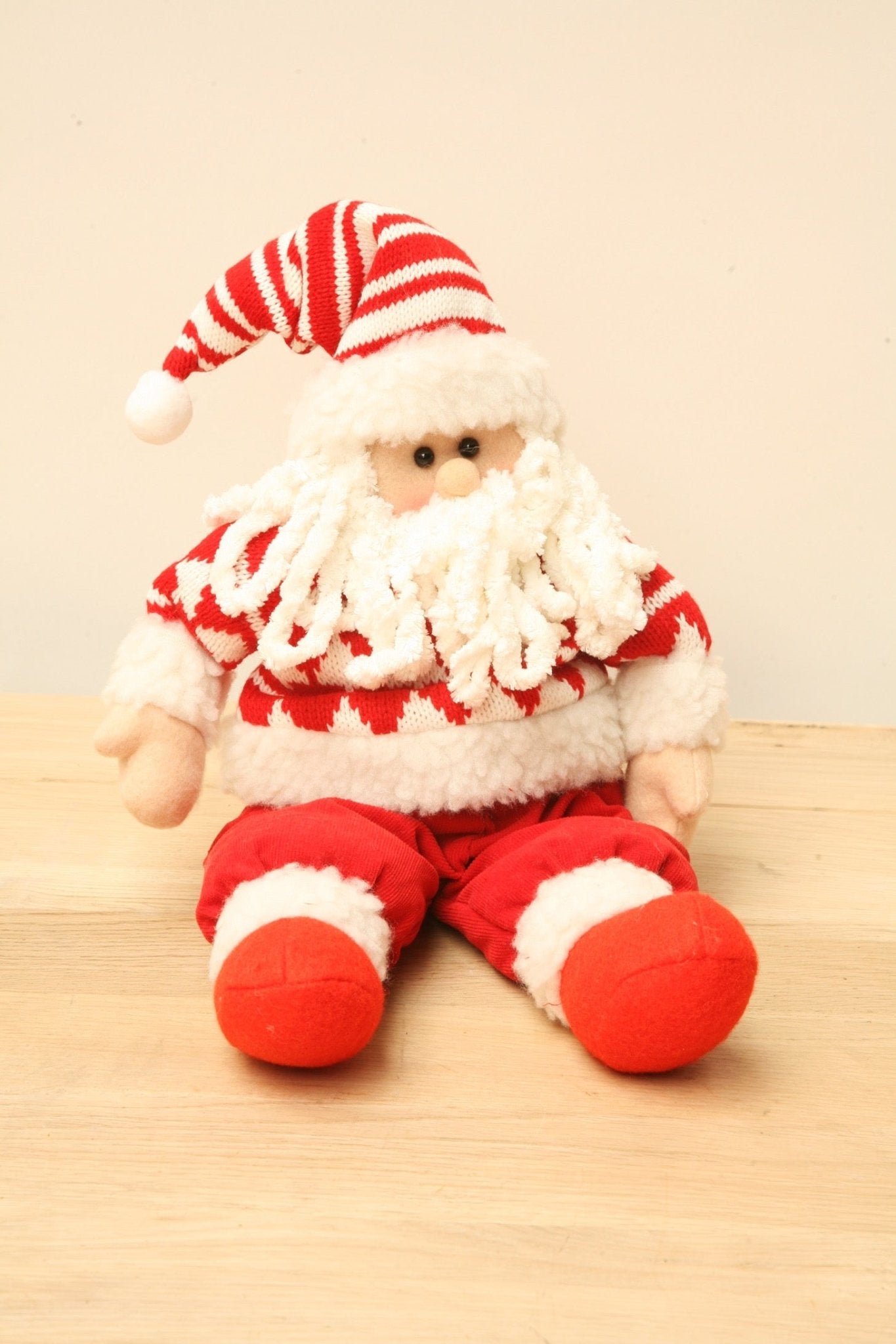 Figure of Christmas Santa Claus sitting with a red and white sweater.