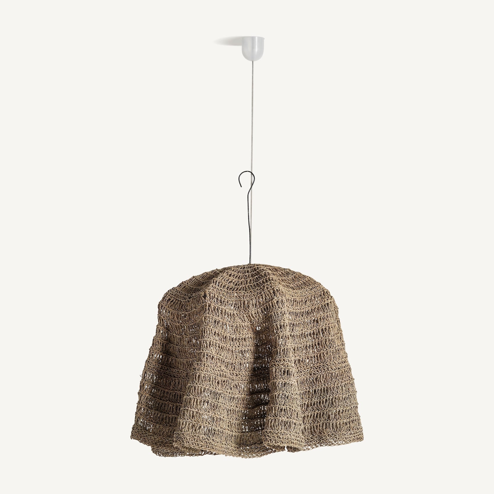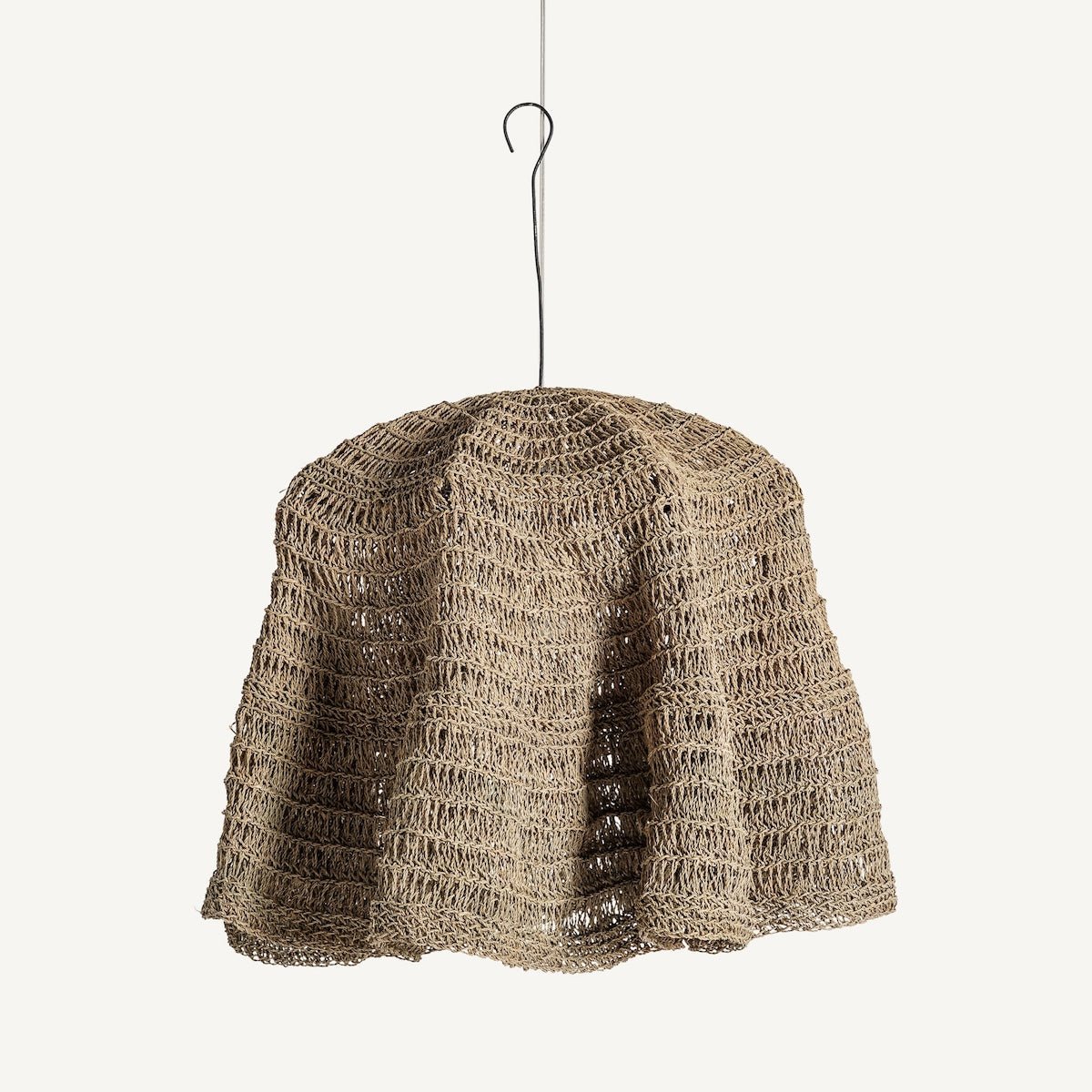 Boho style hanging lamp, made of natural fiber in brown.