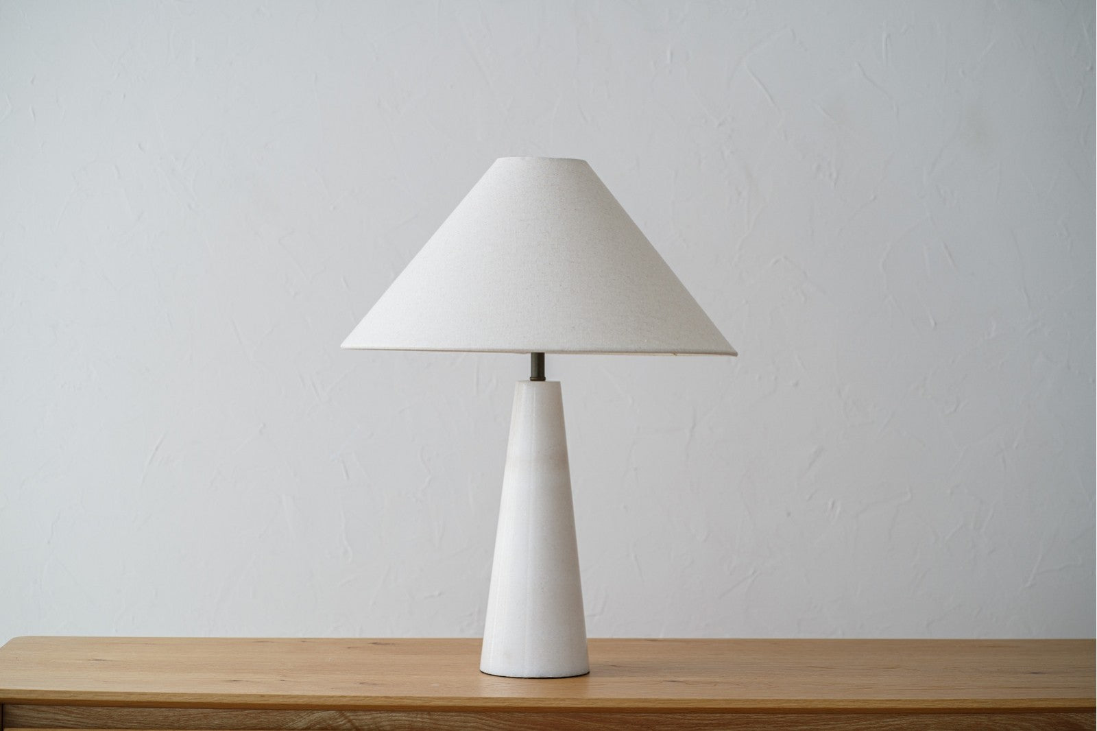 Table lamp made of ceramic paste with a natural matte finish, the cylindrical shade made of off-white cotton with a 6 cm lower edge in natural raffia and a black joining edge.