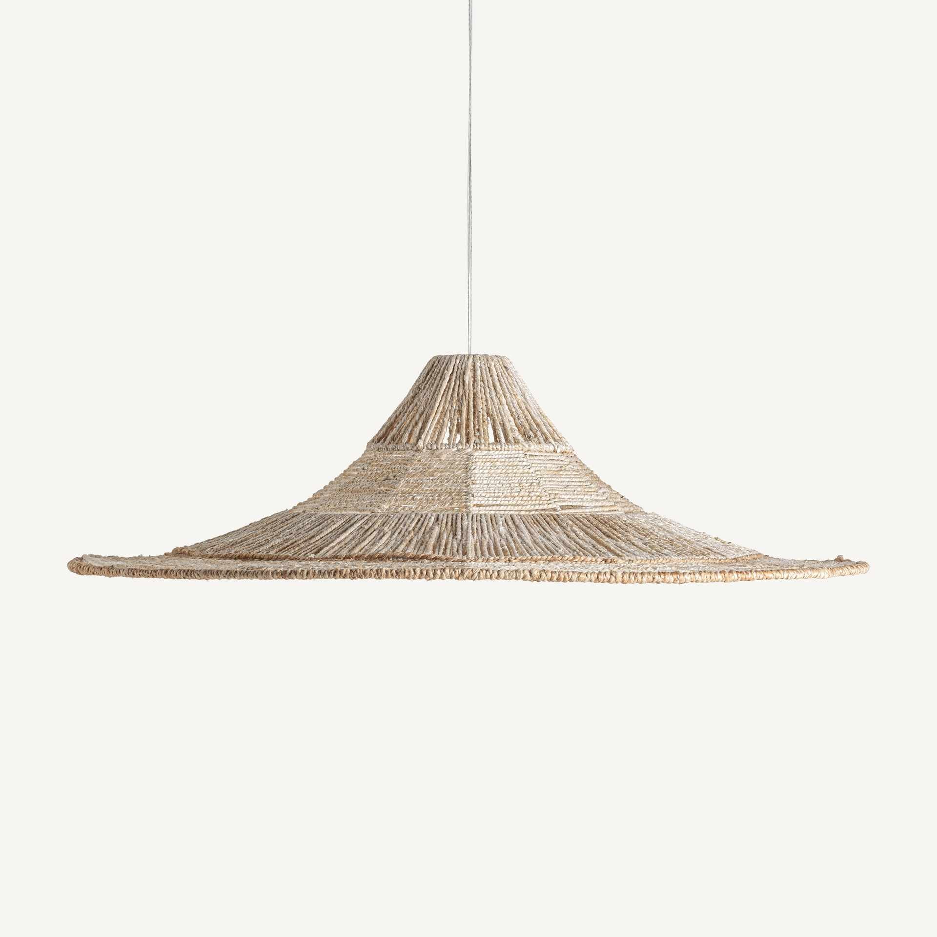 The structure is completed with iron details, which provide stability, character, and a subtle contrast between rustic and contemporary. The result is a pendant lamp that not only illuminates, but also becomes the visual centerpiece of any room thanks to its light, natural, and timeless design.