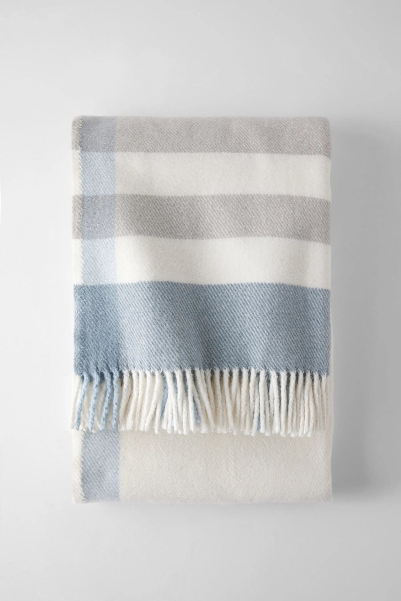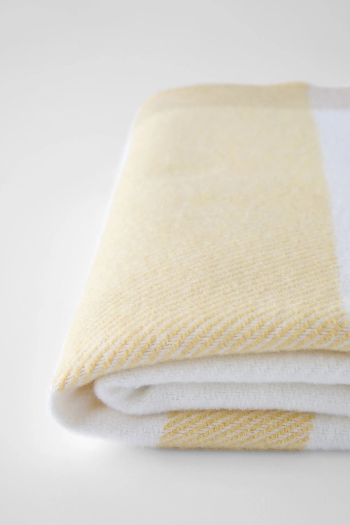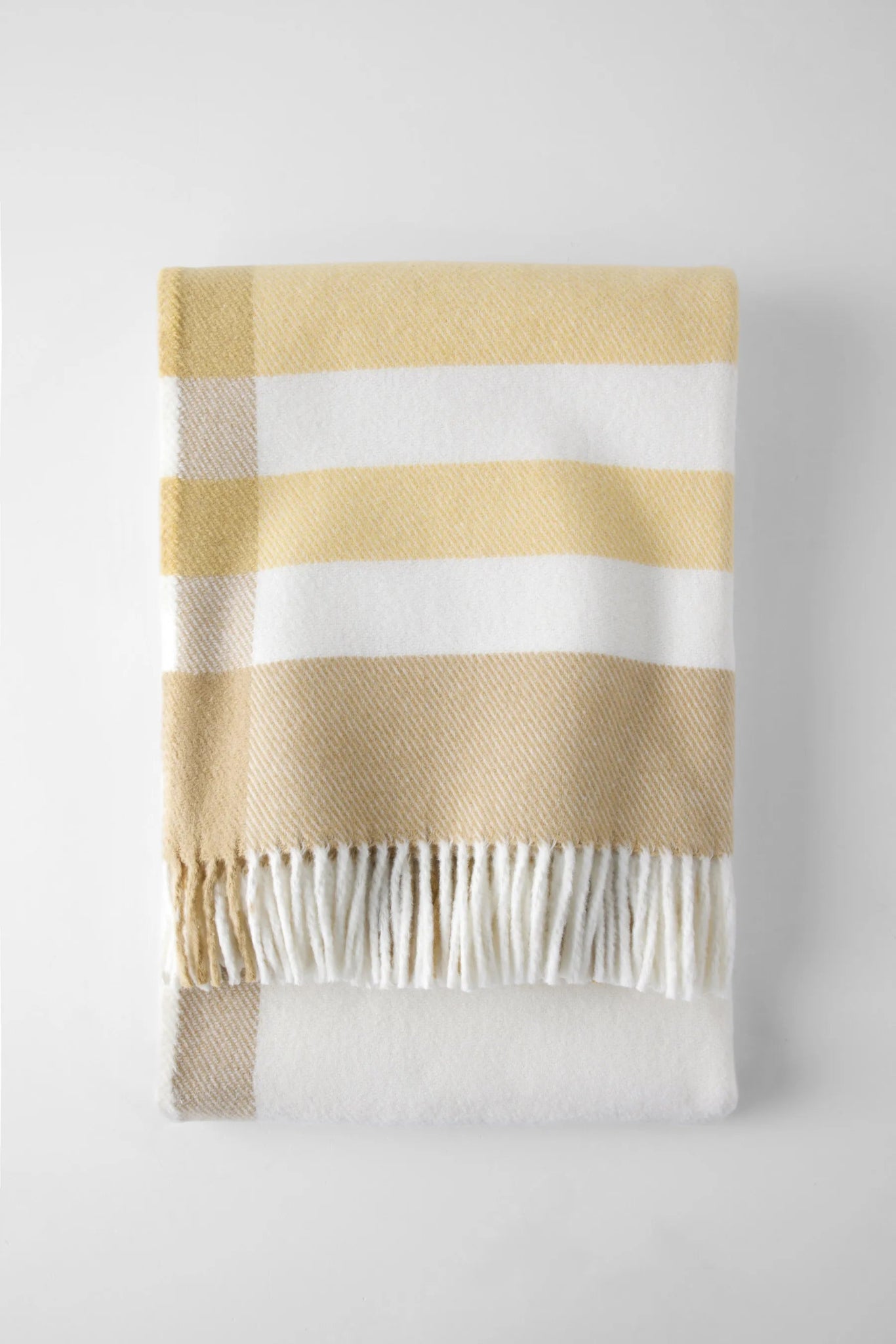 Winter blanket made of 50% cotton and 50% acrylic. Available in colors, yellow, blue, stone, light gray.