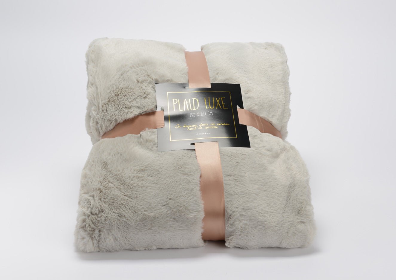 Beautiful and cozy blanket made of 100% polyester in emerald green, cream and taupe colors.