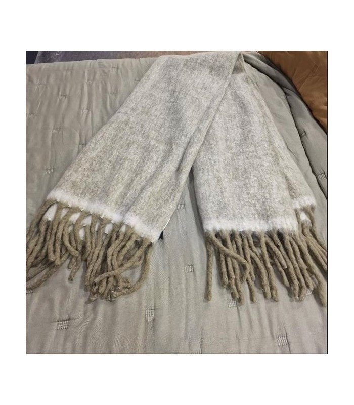 Wool plaid made of 25% wool, 55% acrylic and 20% nylon Mohair type with fringes, with a modern and contemporary design in trendy green color. Unique color, soft and cozy touch for a sophisticated and comfortable style.