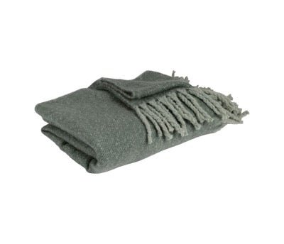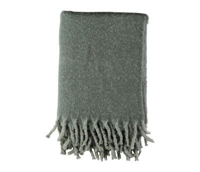 Wool plaid made of 25% wool, 55% acrylic and 20% nylon Mohair type with fringes, with a modern and contemporary design in trendy green color. Unique color, soft and cozy touch for a sophisticated and comfortable style.