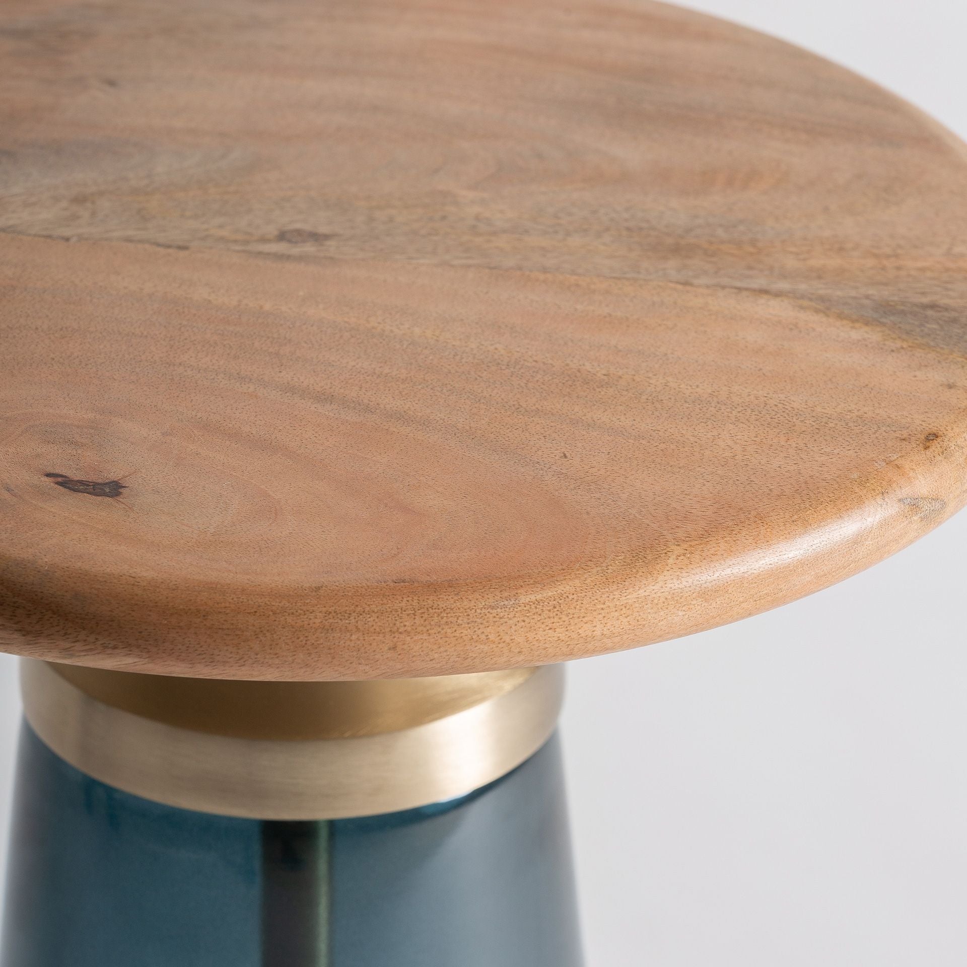 Rectangular dining table with a stone-coloured teak top and a beige metal base. Designed for outdoor use. It has a crossbar at the bottom for greater stability. It can also be used to create rustic and colonial atmospheres.
