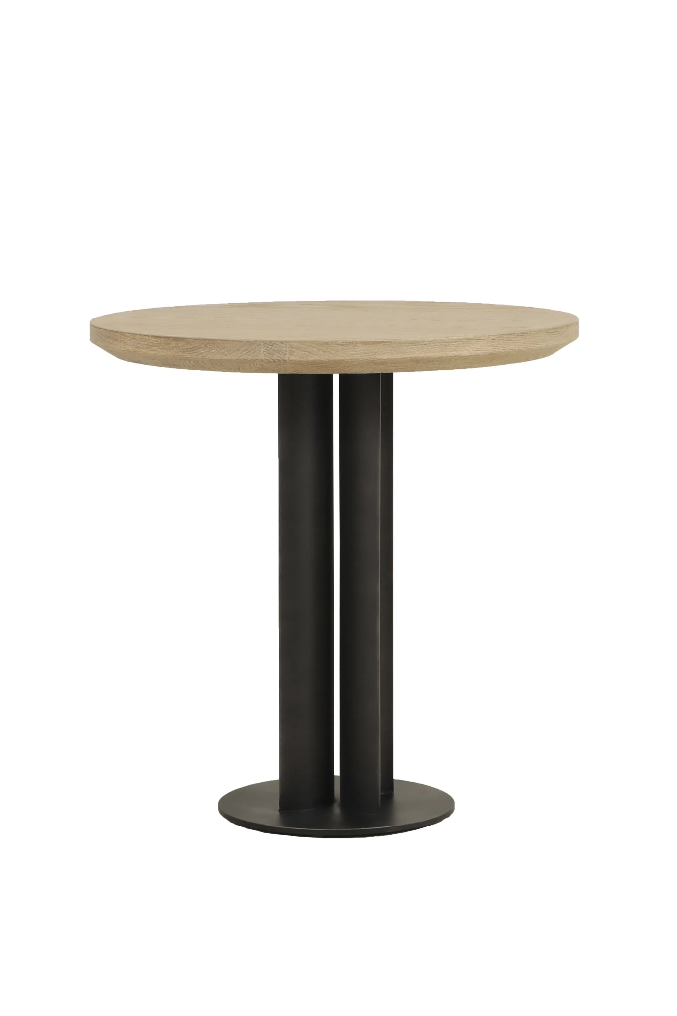 Beautiful side table made of recycled elm wood in natural color and black iron base.