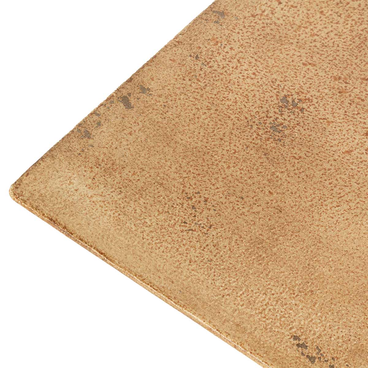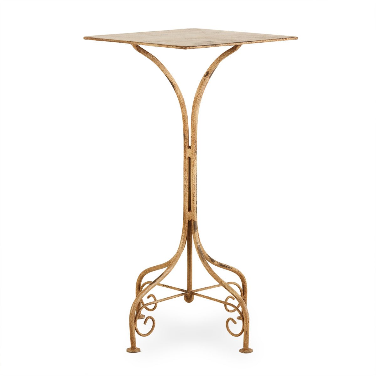 Beautiful side table made of recycled elm wood in natural color and black iron base.