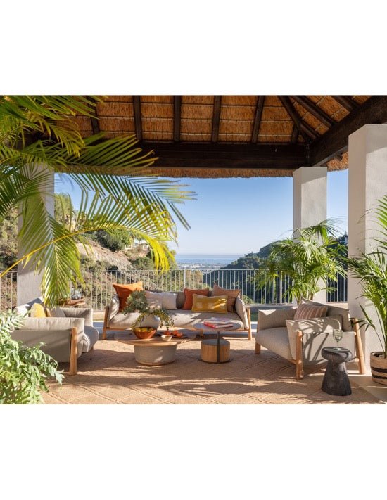 Round side table made of natural teak wood. For indoor or outdoor use, it has a central base with 3 supports. A model for Nordic-style decorations thanks to its style and finish, but also ideal for a fresh, Mediterranean-style environment.