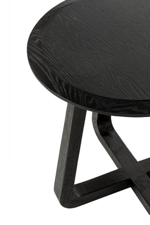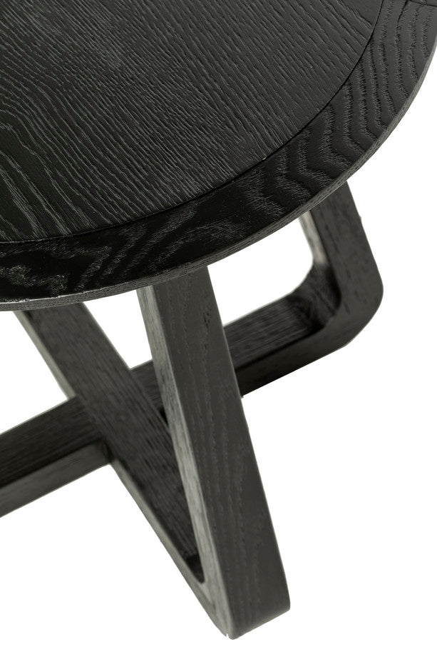 Beautiful side table made of recycled elm wood in natural color and black iron base.