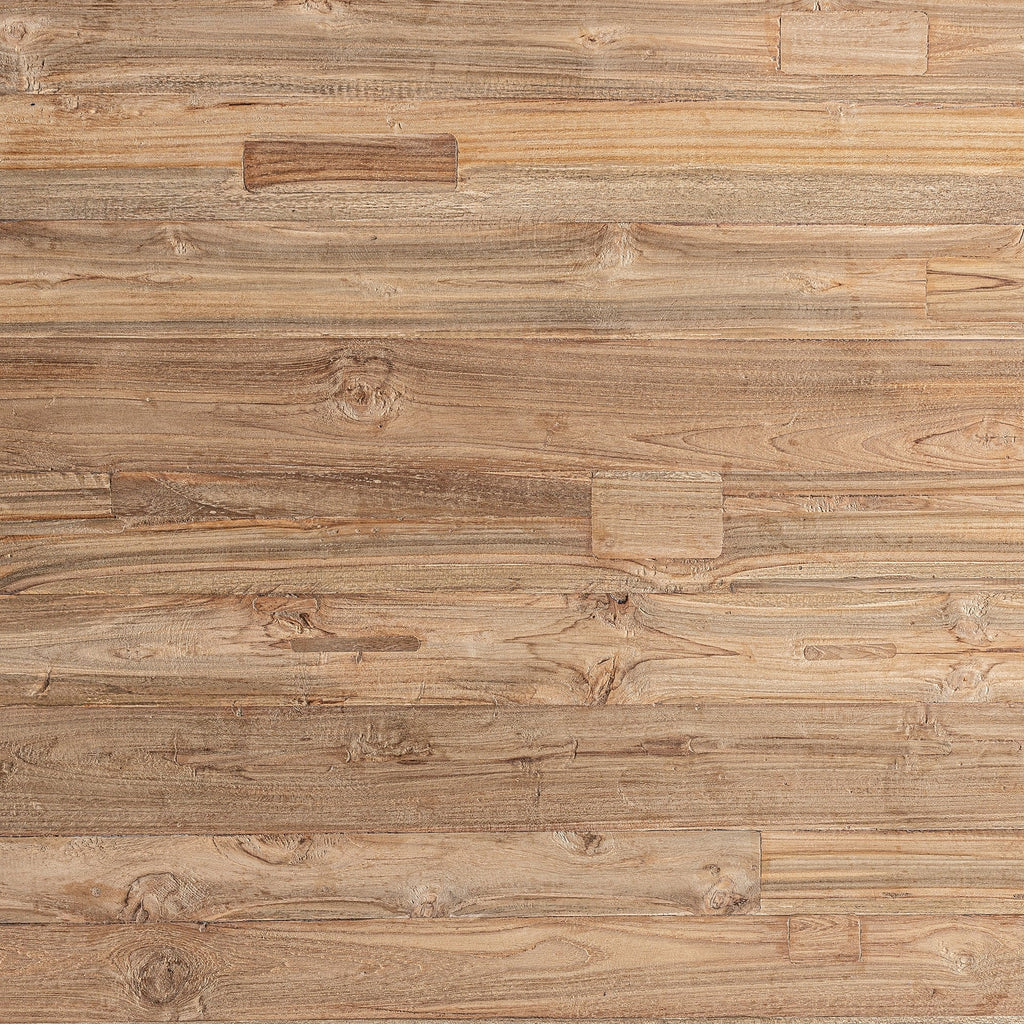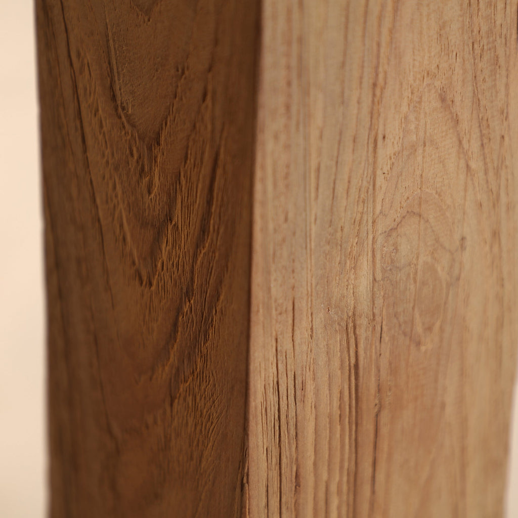 Beautiful handcrafted dining table made of recycled teak wood in brown, detachable product.