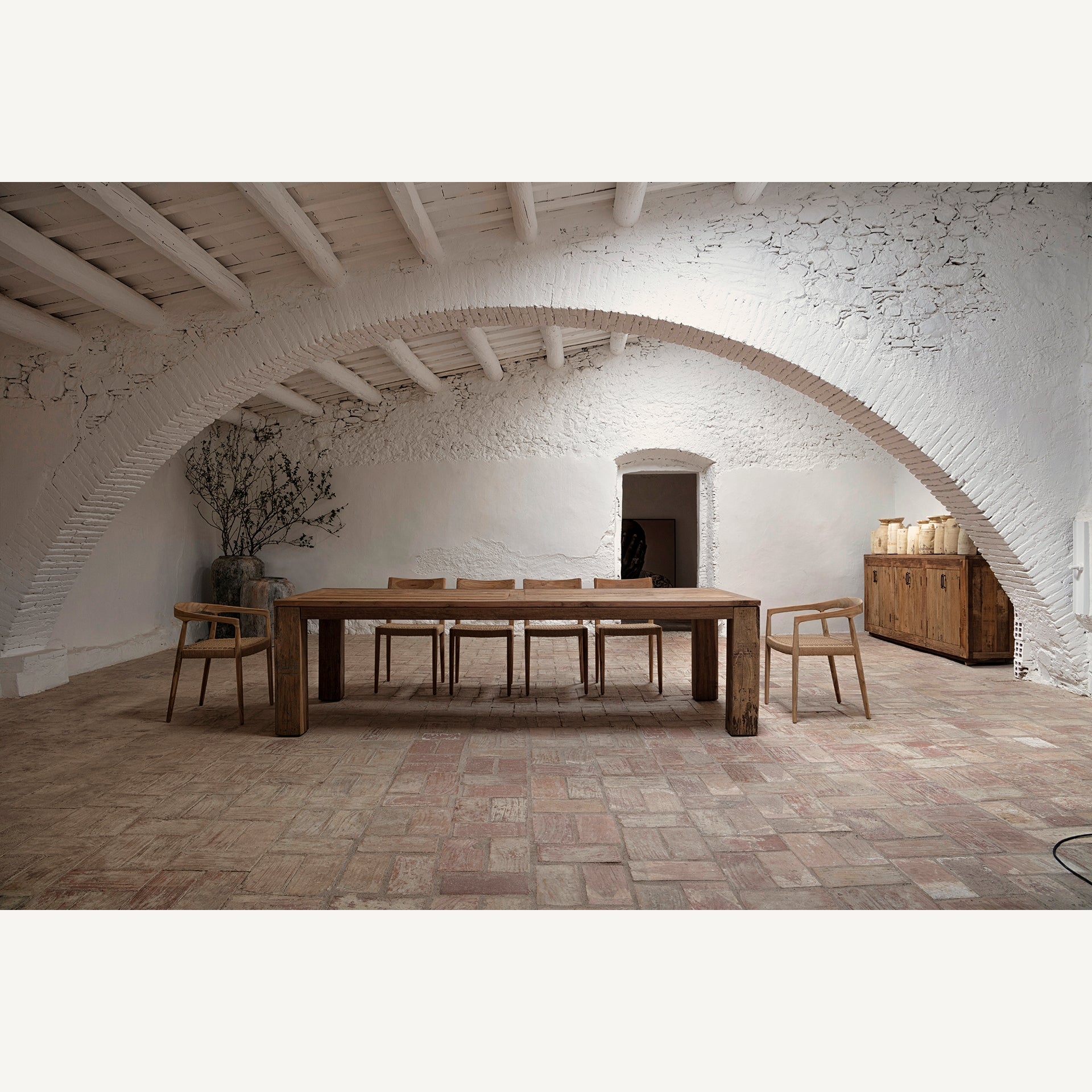 Dining table made of natural-colored pine wood in a contemporary style that Suitable for large meals and family gatherings. Available in two sizes.