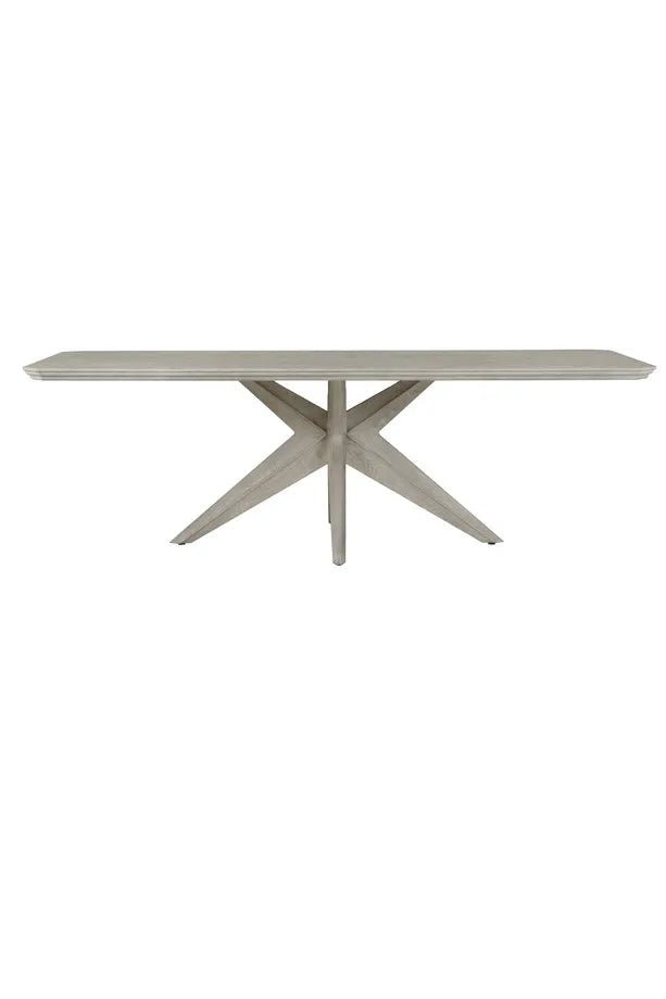Dining table made of synthetic rattan in natural color and brown aluminum base.