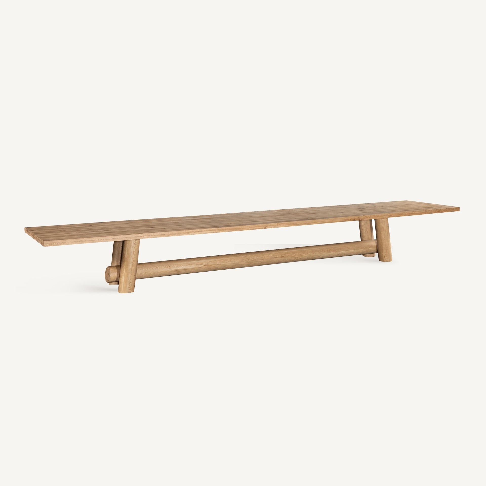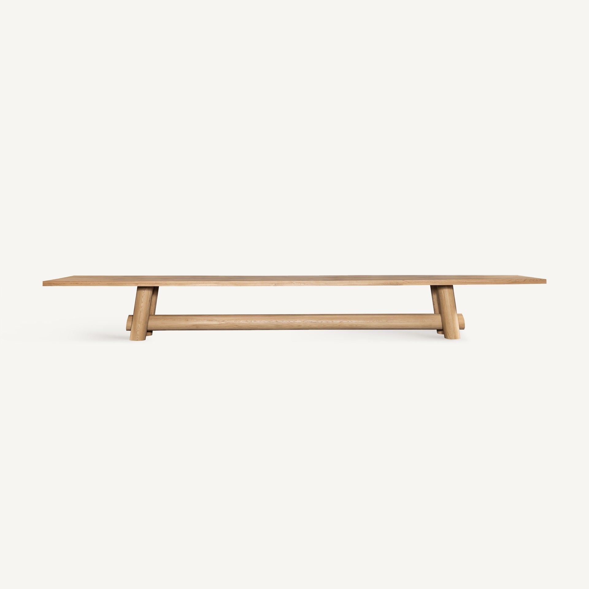 Colonial style dining table, made of light brown oak wood.
