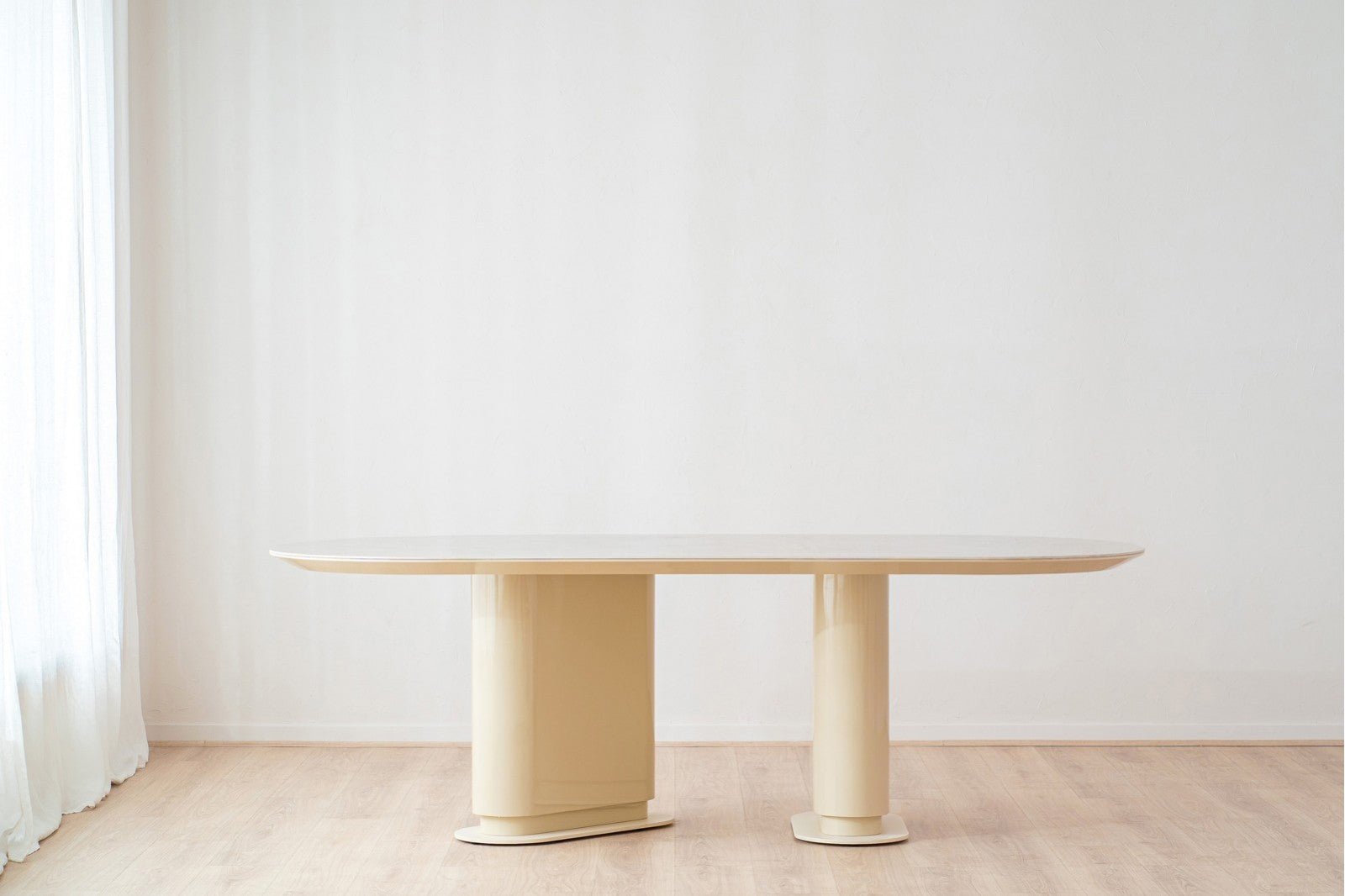 Gutar dining table made of ash MDF board with a natural finish and texture.