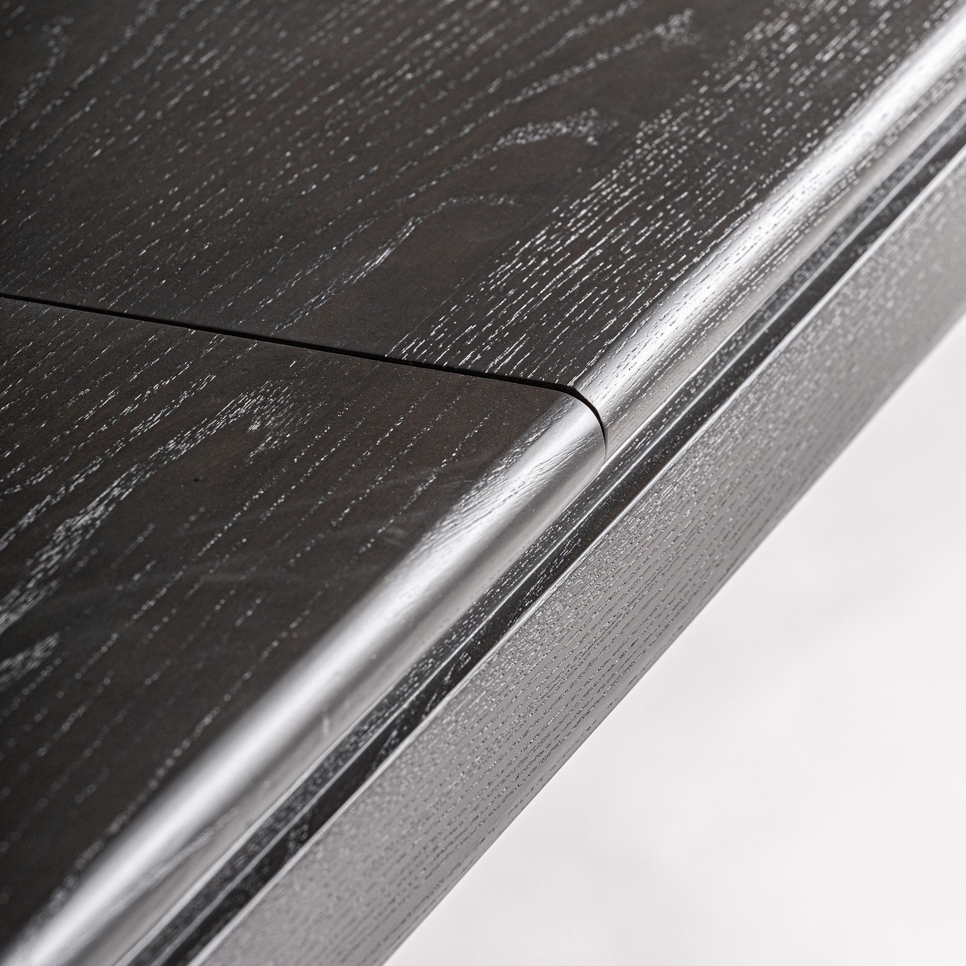 Classic-style extendable table, made of black ash wood combined with wood veneer and rubberwood. Extendable product.