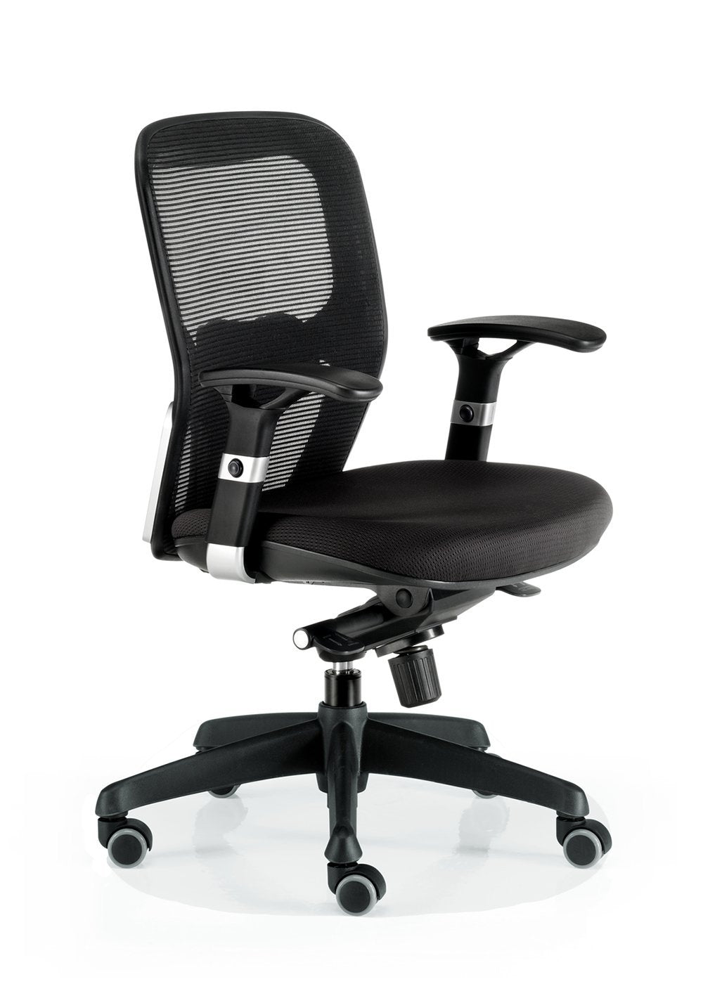 Its fabric-effect mesh backrest provides optimal breathability, while the Syncron mechanism and adjustable lumbar support ensure a dynamic and healthy posture throughout the day. Furthermore, the 3D armrests and the option to add seat reclining (+€40) allow for complete customization of comfort.
