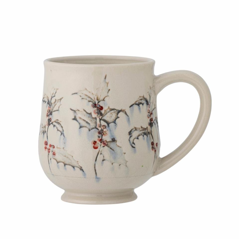 Beautiful stoneware mug in natural colours with a delicate Christmas floral print on its crackled glaze. It will brighten up any Christmas table.