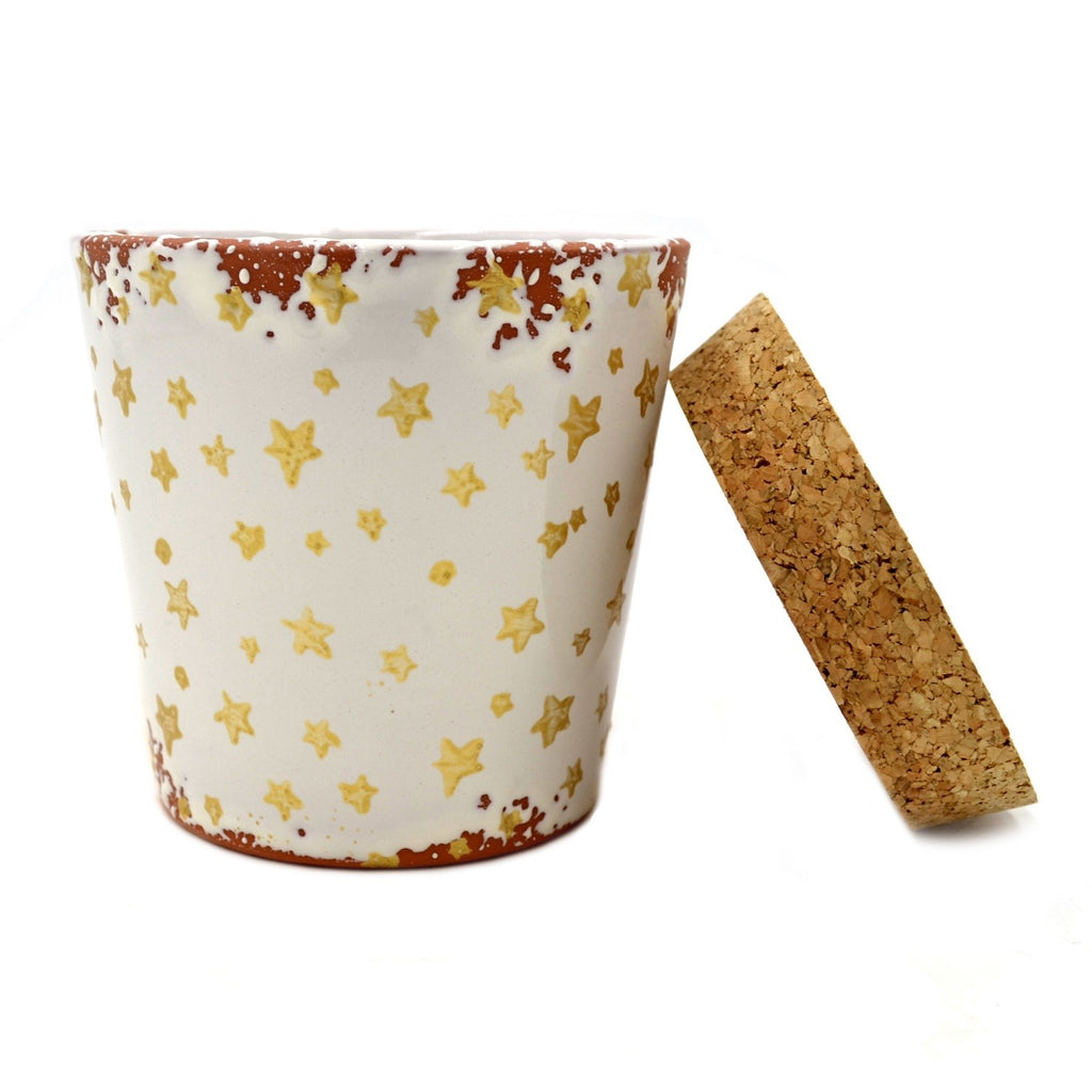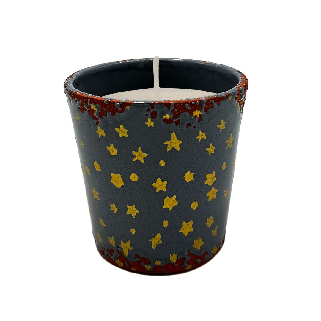 Great candle with a yellow ceramic container, cotton wick and fresh fragrance creating a cozy atmosphere.