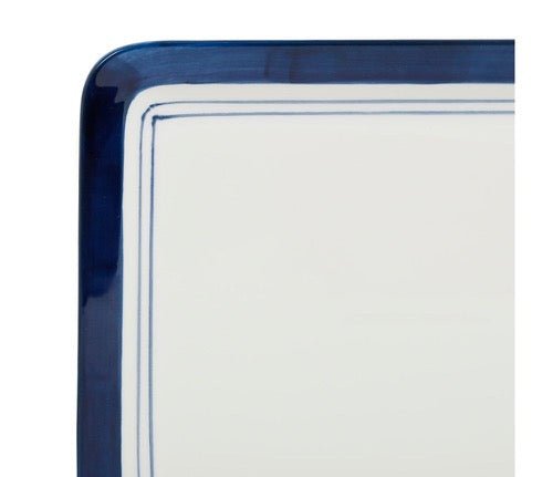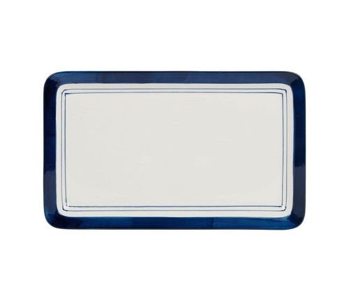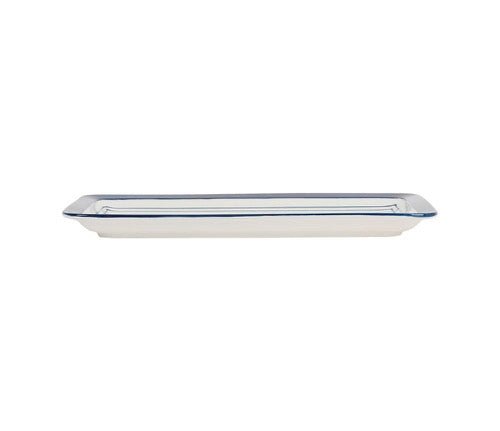 Beautiful oval appetizer plate made of stoneware in white and aqua green.