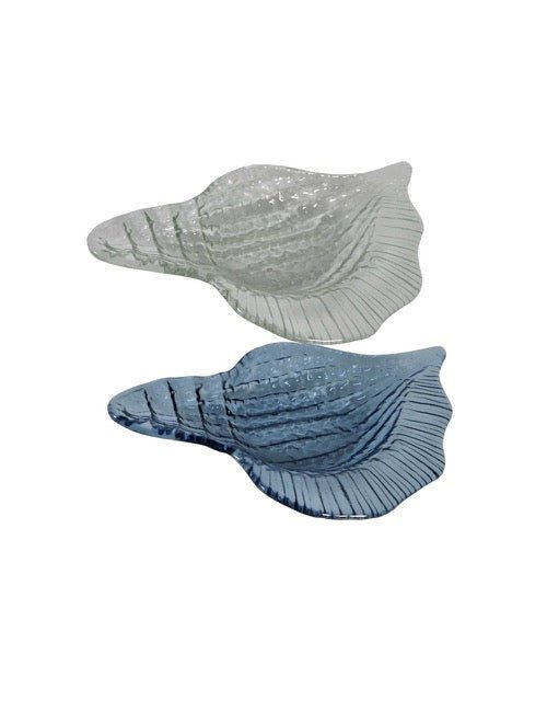Add a nautical touch to your table with this shell-shaped glass plate , crafted in a delicate combination of clear and blue . Its original and elegant design makes it an ideal piece for serving appetizers, desserts, or as a decorative element. Durable and sophisticated, it brings freshness and style to any occasion.