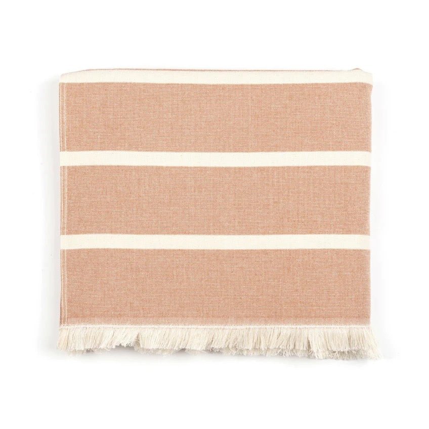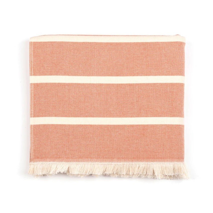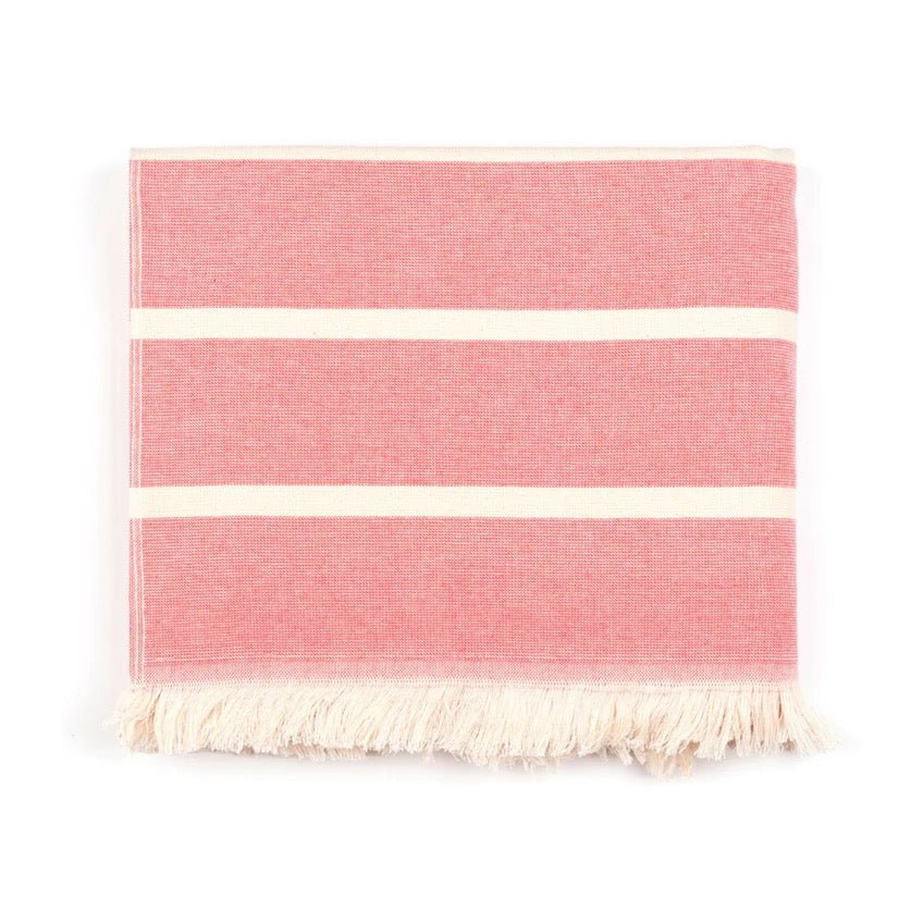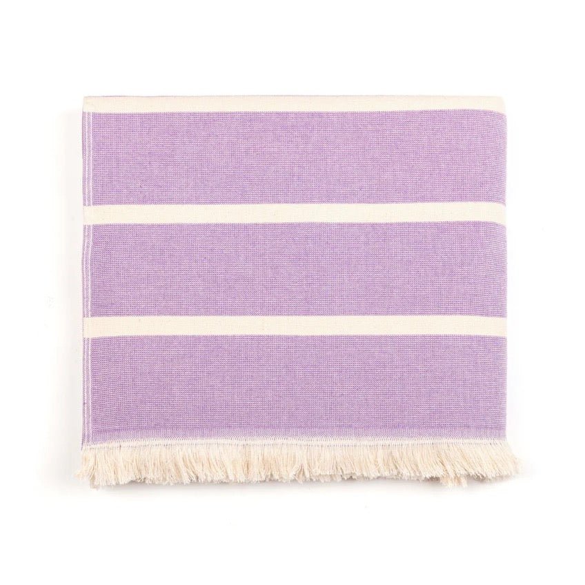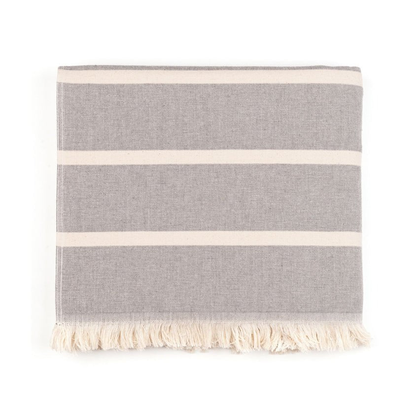 Gibalta beach towel with vertical stripes in two colours that evoke a certain vintage imagery. Made from laminated terry cloth and 420 g/m² cotton.