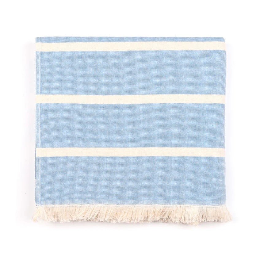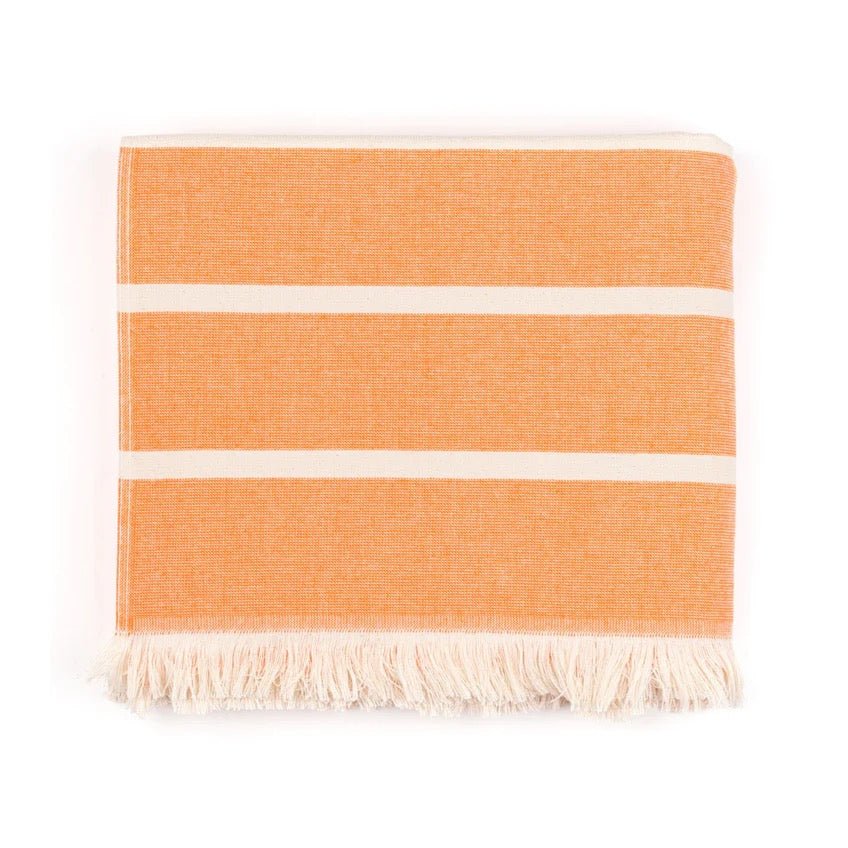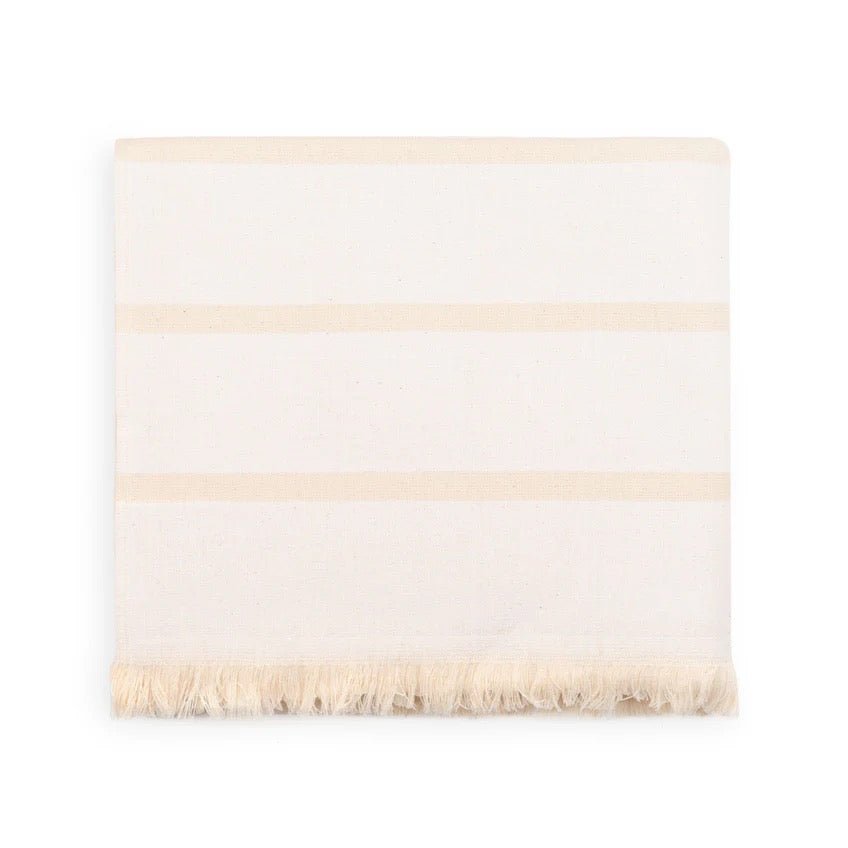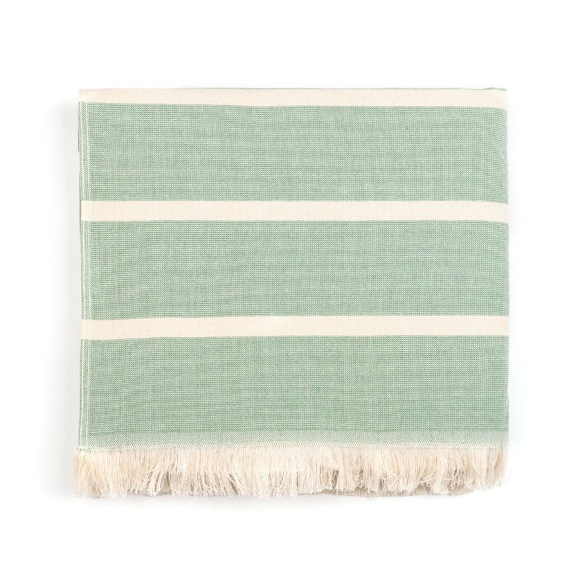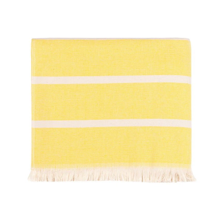 Gibalta beach towel with vertical stripes in two colours that evoke a certain vintage imagery. Made from laminated terry cloth and 420 g/m² cotton.