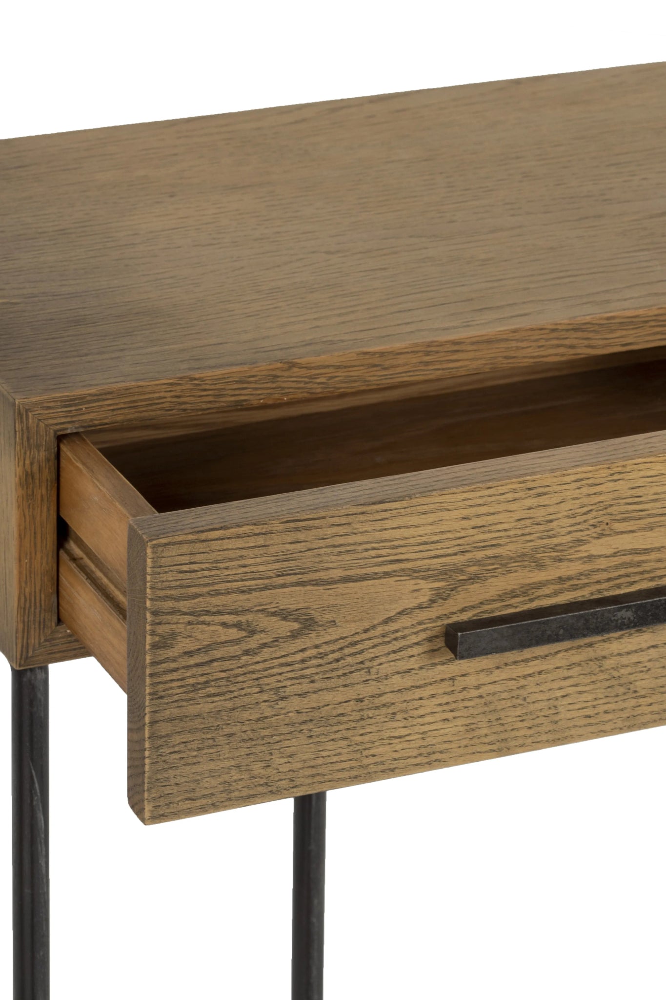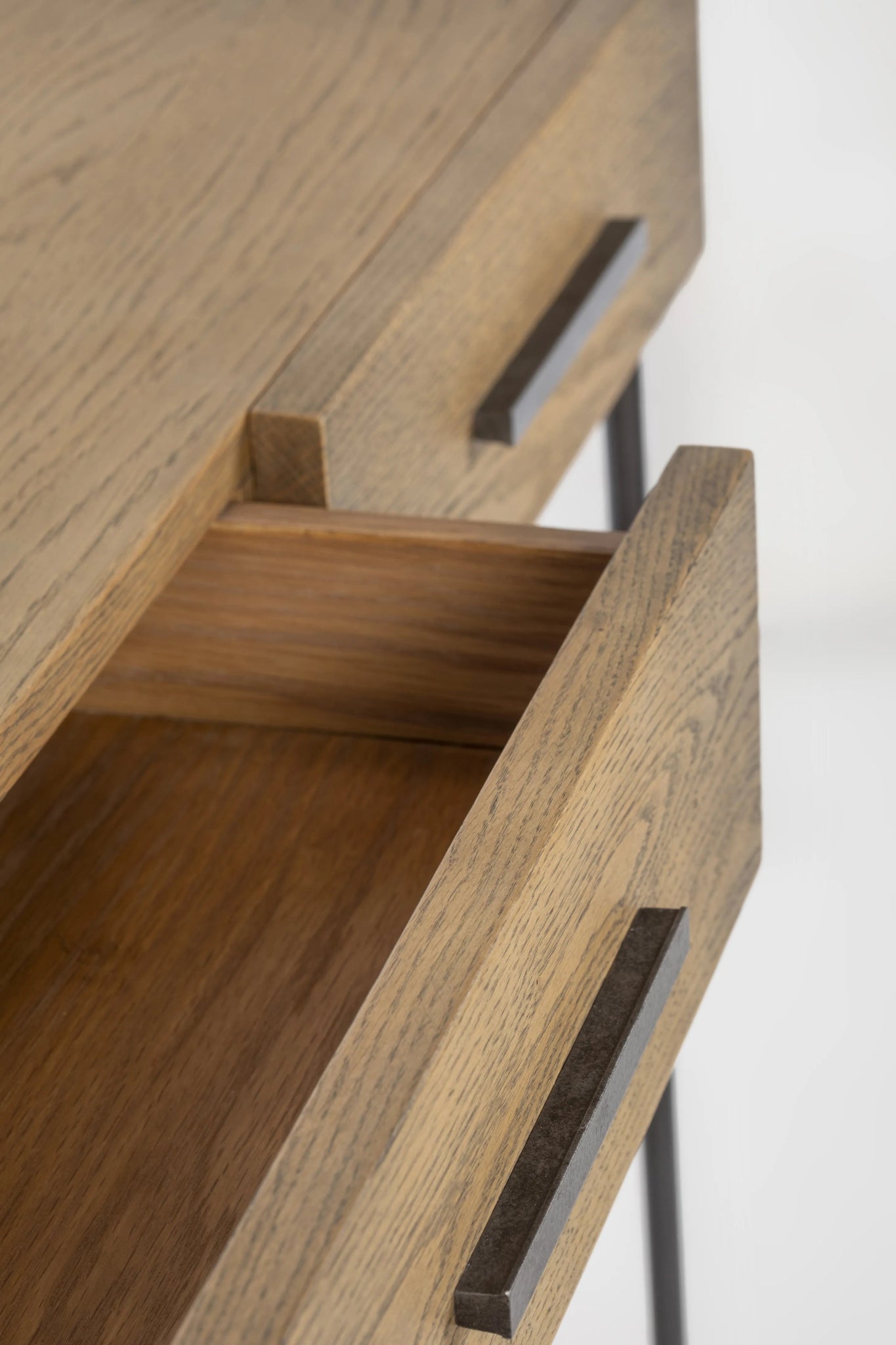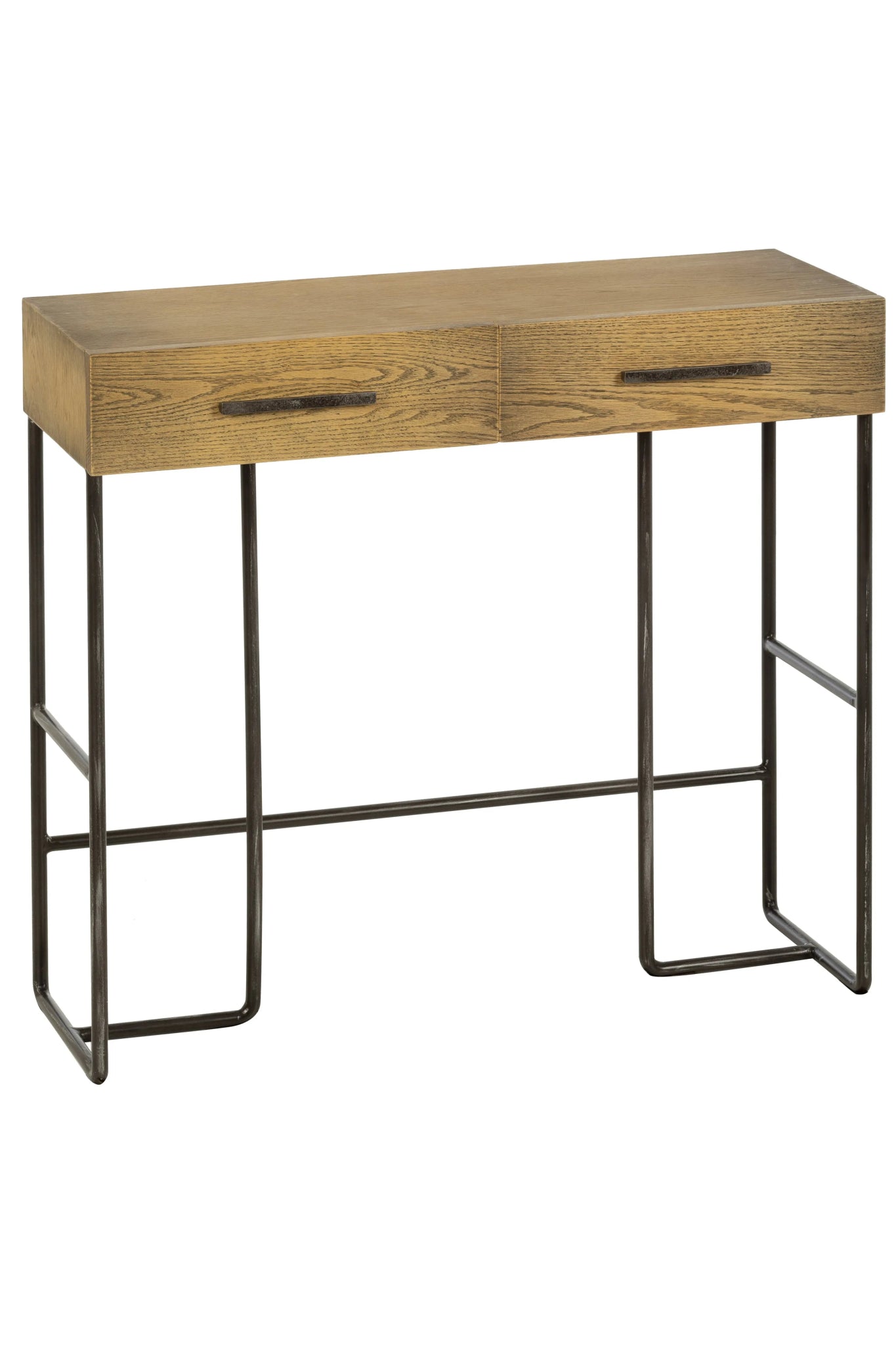 Beautiful console made of oak wood and iron composed of 2 drawers.