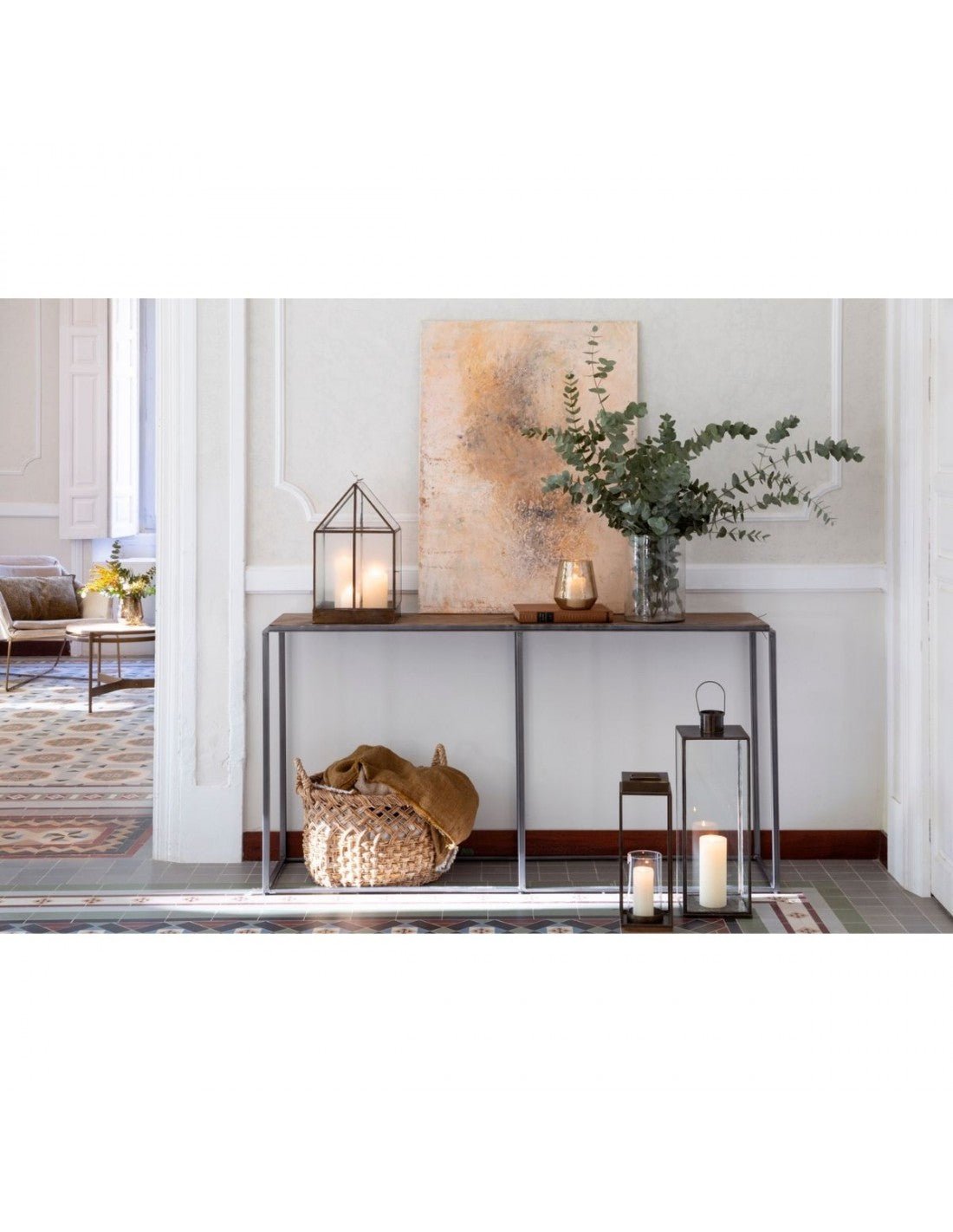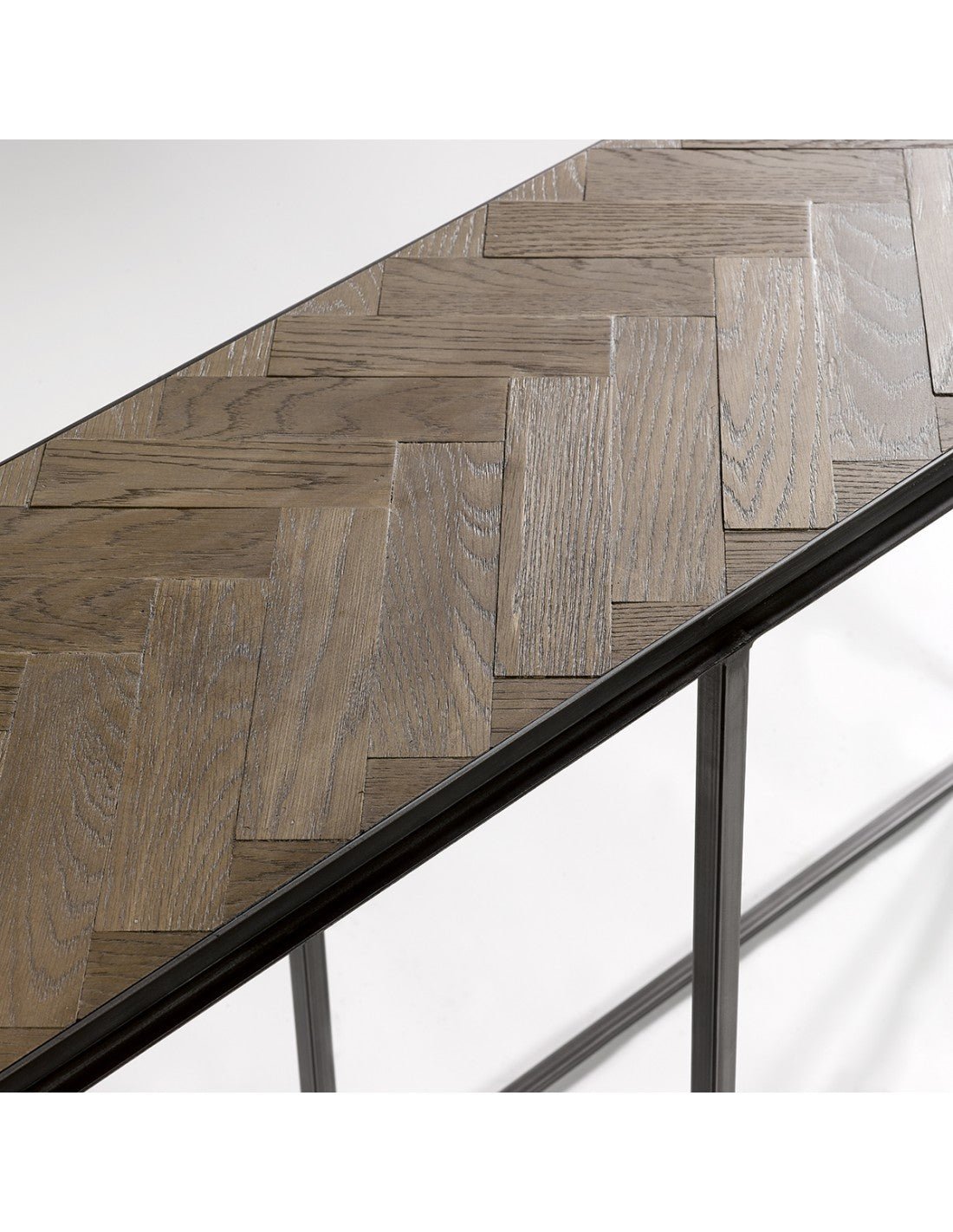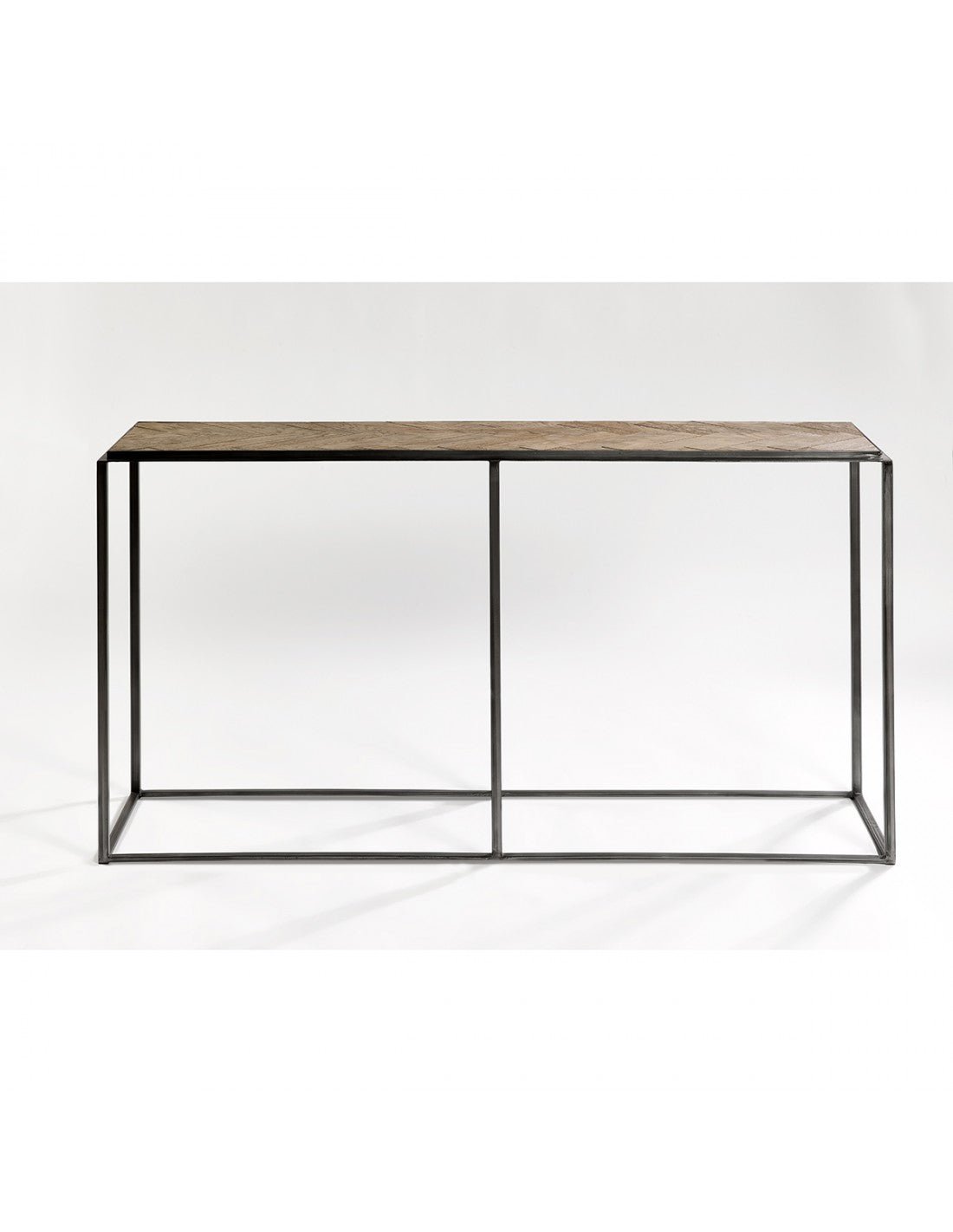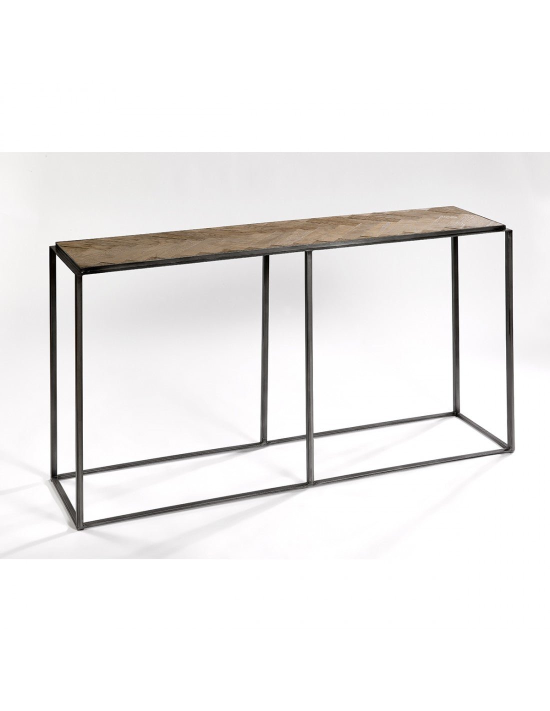 Brown oak wood console table , black metal frame, straight lines... the design is perfect for integrating into your hallway or any space where you need to incorporate a loft-style table.