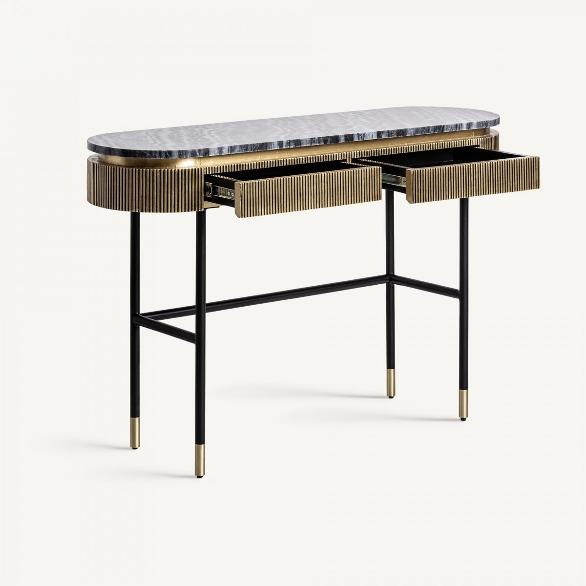 Chest of drawers made of patinated white oak wood. It has 3 drawers and a structure suspended from the floor with wooden legs. It can be used as a nightstand.
