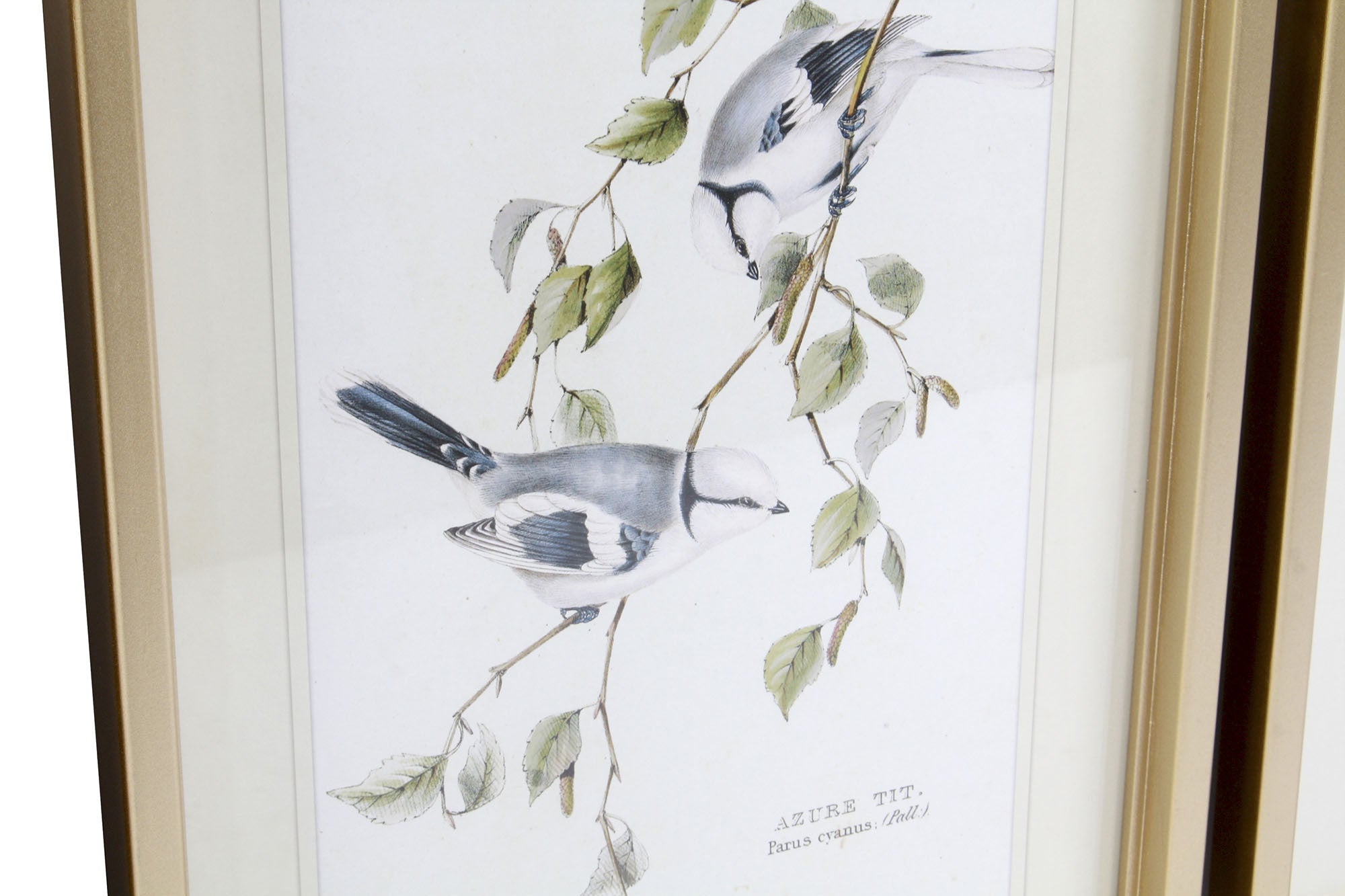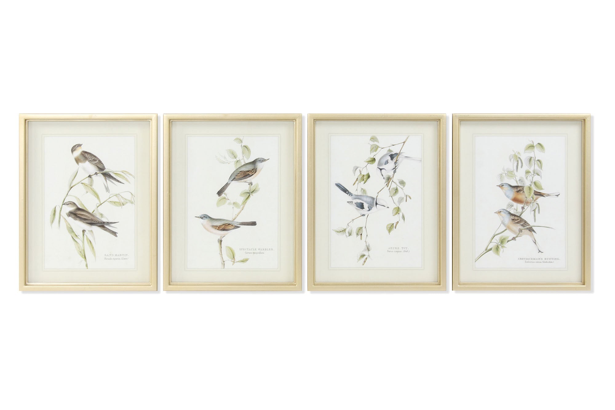CLEARANCE SALE - Beautiful paintings with bird drawings framed in gold-colored fir wood.