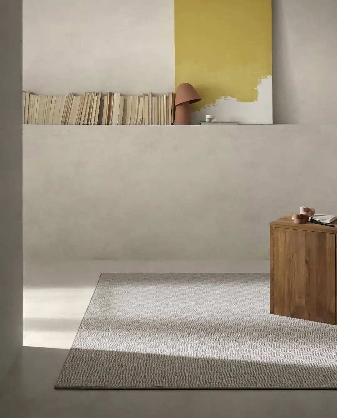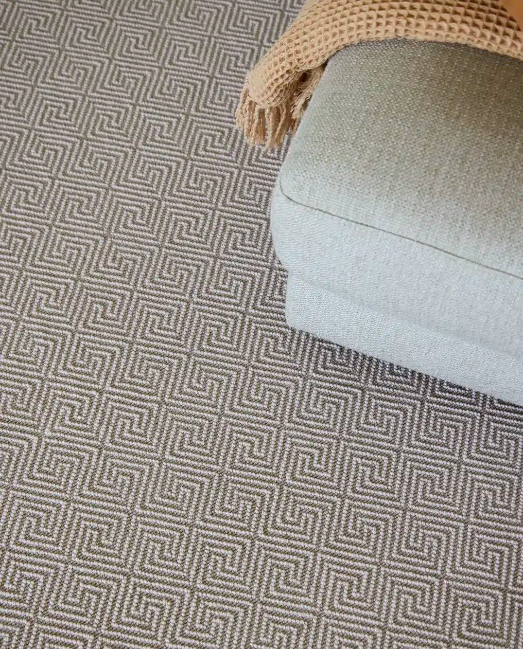 La alfombra rectangular Gala está elaborada con pura lana natural española y se caracteriza por un elegante juego de texturas con efecto saltillo en forma de laberinto. Tejida en telares tradicionales Wilton, es una pieza de gran calidad, apta también para instalaciones comerciales. Disponible en seis combinaciones de colores contemporáneos y compatible con suelo radiante.