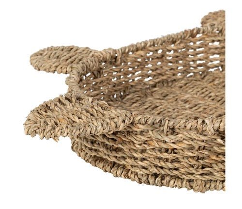 Original y decorativa, esta bandeja en forma de tortuga está elaborada en fibra natural e hierro aportando calidez, textura y un aire artesanal a cualquier espacio. Su diseño orgánico y detallado la convierte en una pieza ideal para complementar ambientes de estilo tropical, costero o boho. Perfecta para decorar mesas, recibidores o como base para pequeños objetos.