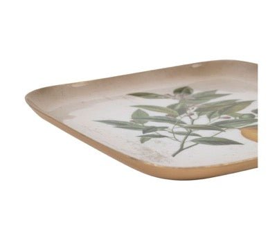 Dale un toque vibrante y sofisticado a tu decoración con una bandeja cuadrada de hierro de acabado resistente, realzada con un exclusivo diseño artístico de un limón en su rama en tonos amarillo y verde. Su estructura firme y su estética tropical hacen de esta pieza un elemento funcional y decorativo, ideal para servir, organizar o simplemente destacar como acento visual en cualquier ambiente. Perfecta para interiores con estilo natural, étnico o contemporáneo que buscan incorporar detalles llenos de vida y personalidad.