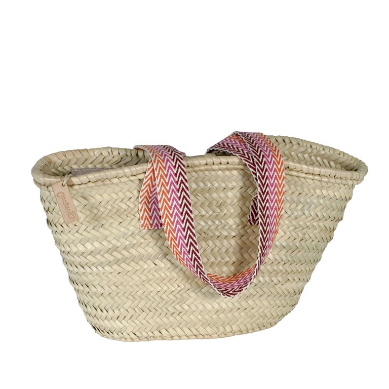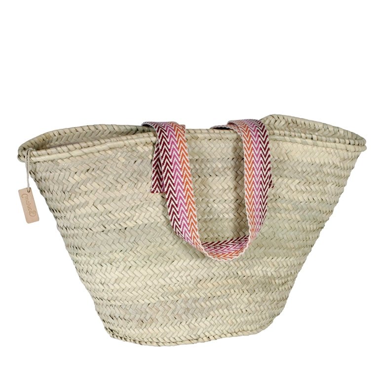 Precioso bolso capazo fabricado en anea color natural y asas con dibujos de cuadros. Disponible dos medidas.