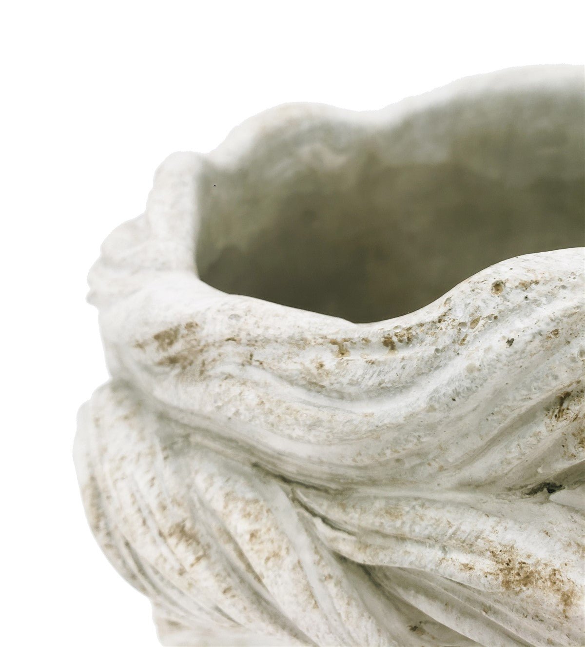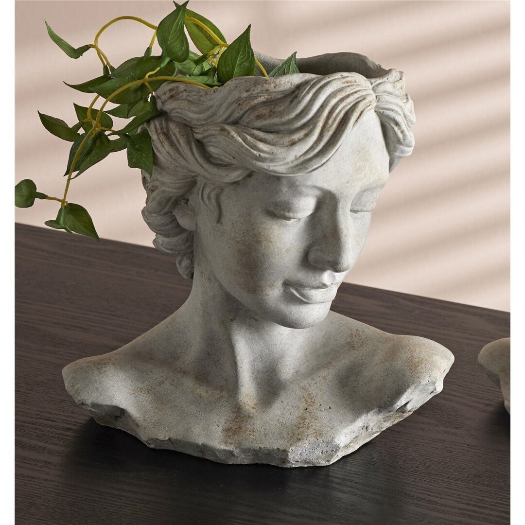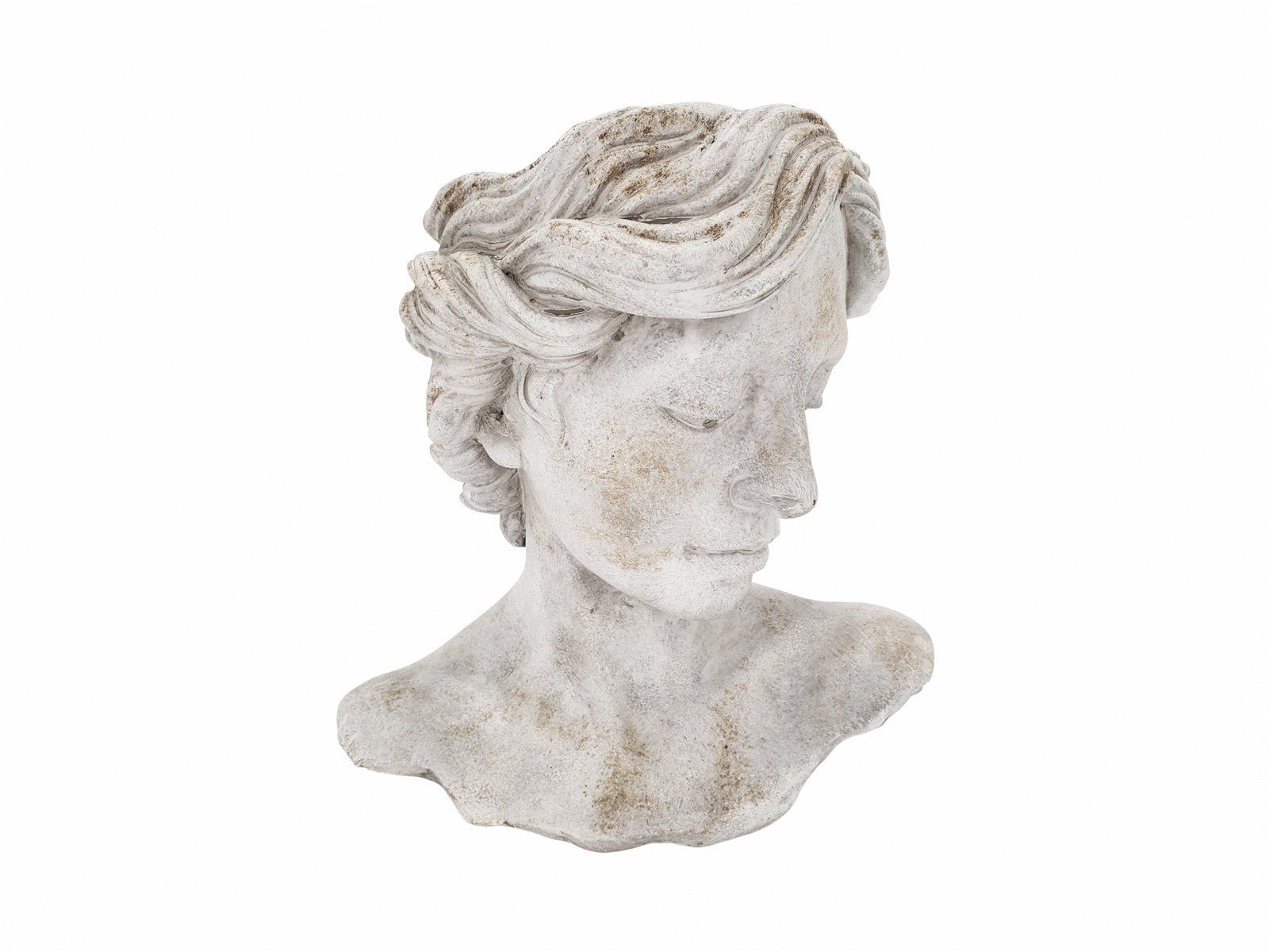 Original busto de perfil de una mujer fabricado en cemento de color gris.