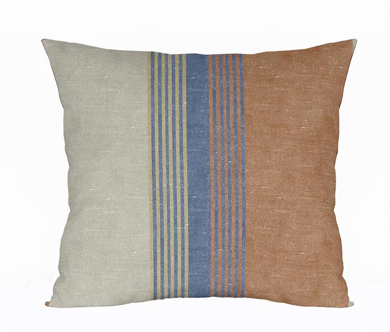 Precioso cojín fabricado en tela con detalles de rayas. Relleno de fibra incluido.