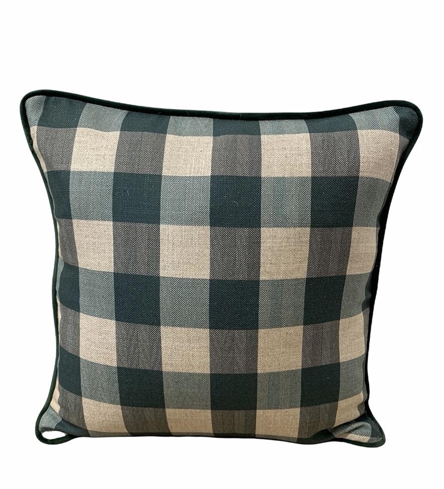 Cojín con estampado vichi en color verde o celeste. Fabricado en algodón. Cremallera como cierre. Relleno incluido.