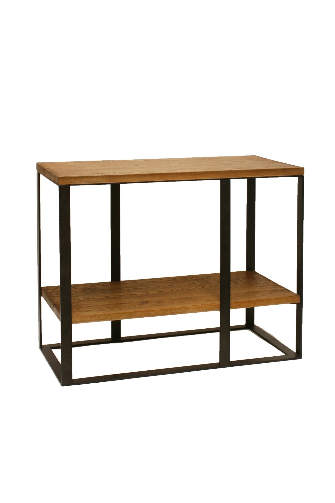 Cómoda fabricada en madera y estructura de patas en hierro de color negro.