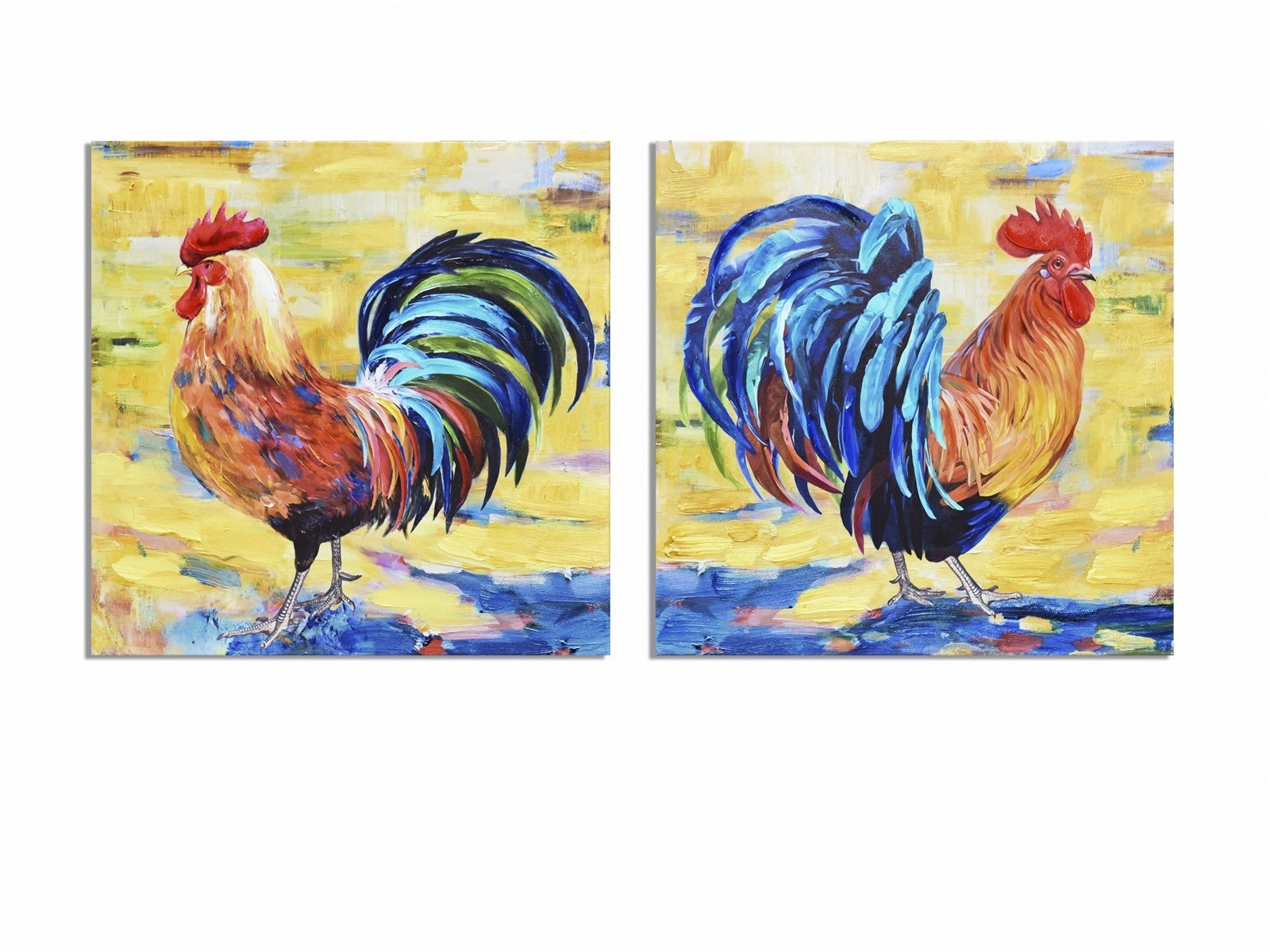 Precioso cuadro impreso sobre lienzo con 50% óleo con dibujos de gallos multicolor.