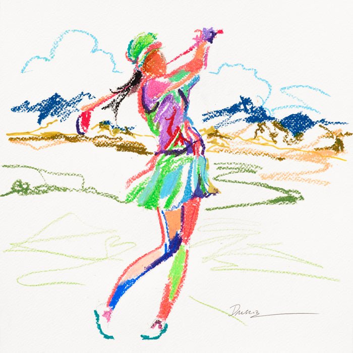 Nuestro cuadro "Golfista I" tiene un fondo beige impreso en lienzo y posteriormente está pintado a mano antes de ser estirado sobre un bastidor de madera. Original y colorido, dará un toque personal e intransferible a cualquier espacio.