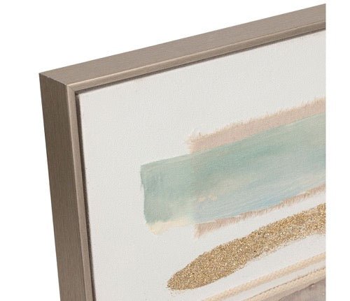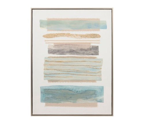 Este cuadro líneas, impreso sobre lona y enmarcado con madera de pino natural, evoca la calma con una paleta de tonos pasteles azul y rosa. Su diseño sereno y atemporal convierte cualquier espacio ideal para quienes buscan elegancia en su decoración.