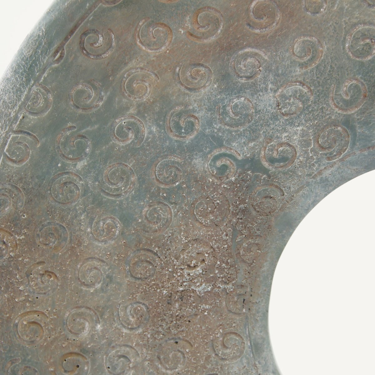 Disco fabricado en piedra de jade procedente de Hebei ciudad del norte de China, de color verde con base de metal en color negro. Es un producto desmontable, por un lado el disco y por otra la base de metal negra.