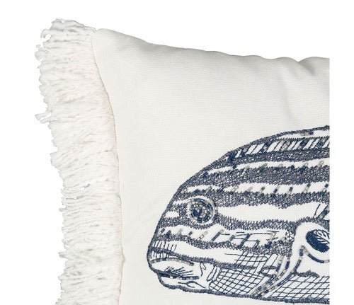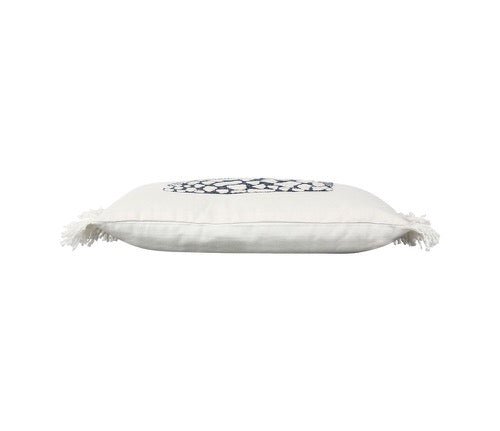Sumérgete en una decoración serena y evocadora con la funda de cojín Mareas, confeccionada en una suave mezcla de algodón y viscosa. Su diseño en blanco y azul marino, con ilustraciones de ballena y caracola, añade un toque marino, elegante y relajado a cualquier rincón del hogar. Ideal para ambientes costeros, mediterráneos o de inspiración natural. Aporta frescura y textura con una pieza que combina confort y estilo.